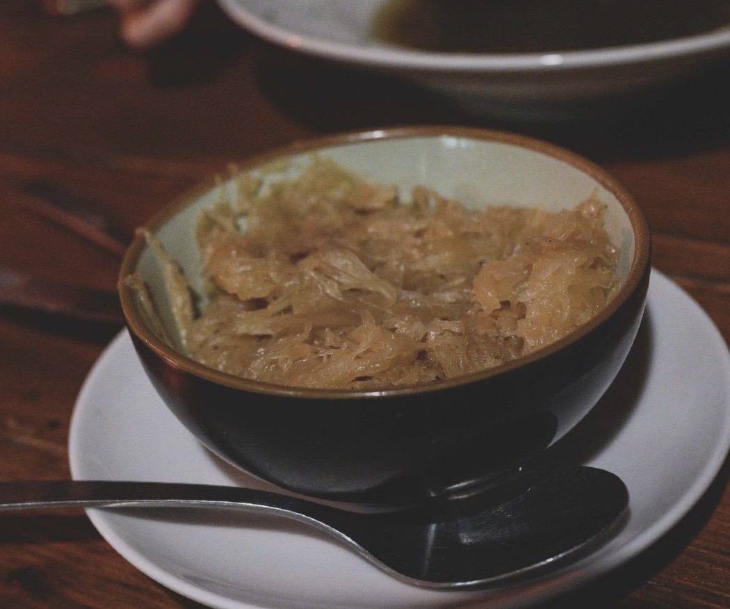 肉丸子调味挺赞,三人都觉得这盘菜最好吃。配的酸菜竟然是也是挺大一碗,点了这道看着这量有点方