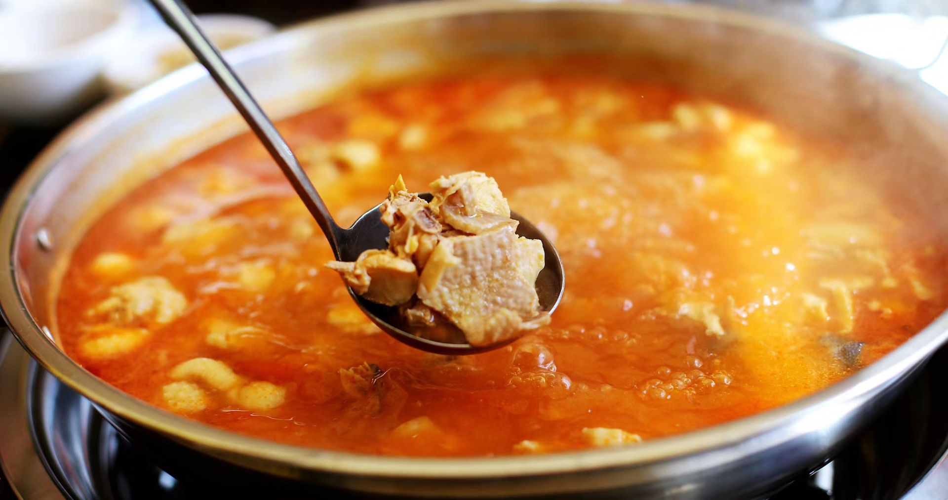 酸汤煮鸡很好吃,酸汤特别开胃,一碗汤加入切得很细的韭菜,我很喜欢这种味道