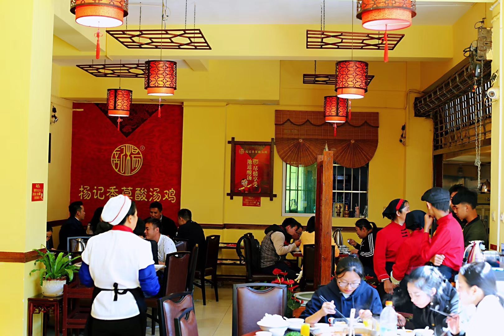 昆明老城区呈贡,现在已经成为新城区,到处都是高楼大厦,本地朋友们很推荐这家杨记香草酸汤鸡,很有意思的一家老店,把泰国的香茅草、贵阳的酸汤结合起来,因为它在这两个地域的中间,里面还加有木姜子油的味道。酸汤煮鸡很好吃,酸汤特别开胃,一碗汤加入切得很细的韭菜,我很喜欢这种味道。一份鸡吃完还加了一份,唯独不好的是鸡肉很肥,鸡皮不太敢吃,要是用乌鸡或者土鸡就更好了。昆明还有个好处,我们成都人喜欢的豌豆尖在这一年四季如春的春城随时都有。