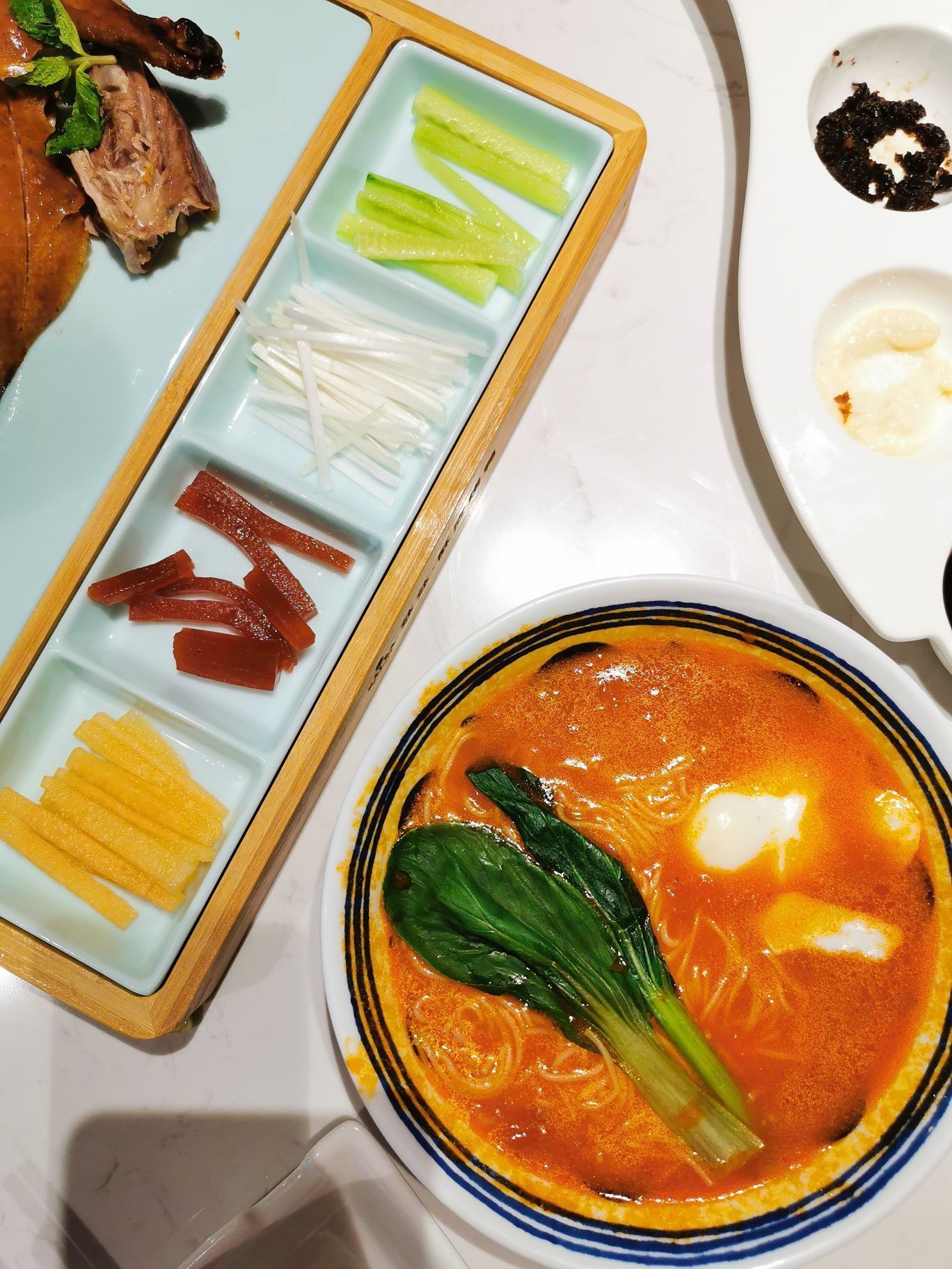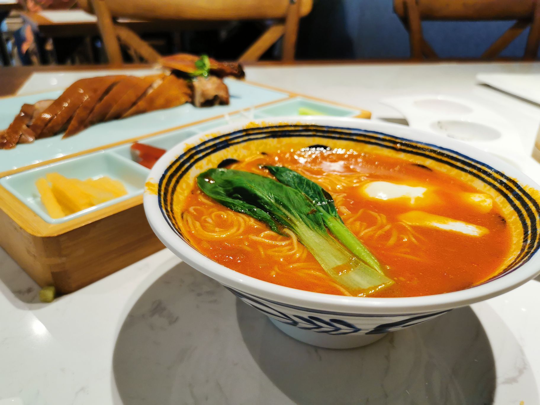很好吃,还有小甜点,面包也好好吃,表面一层芝士,味道浓郁,莎莎家的烤鸭,酥皮做的不错,虽然有点...喜欢莎莎,不是因为烤鸭,而是空心番茄面,酸酸甜甜,很好吃,还有小甜点,面包也好好吃,表面一层芝士,味道浓郁,莎莎家的烤鸭,酥皮做的不错,虽然有点油腻,但是酥脆的口感其他家还真是比不了。