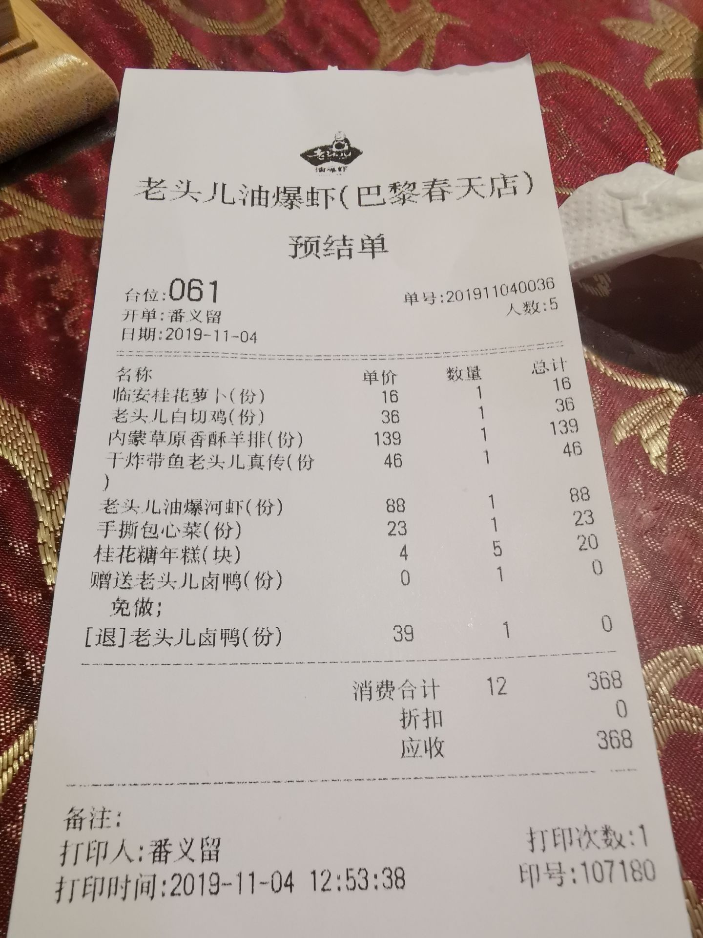 网友2019-11-05最最开心的是竟然扫码抽奖一个免单酱鸭,超值的一顿朋友小聚餐。每个都是招牌菜,口感是喜欢的杭帮每个都是招牌菜,口感是喜欢的杭帮。首选他家的油爆虾,充着名字点的,还有最爱的点心糖年糕,萝卜酸甜可口。最最开心的是竟然扫码抽奖一个免单酱鸭,超值的一顿朋友小聚餐。
