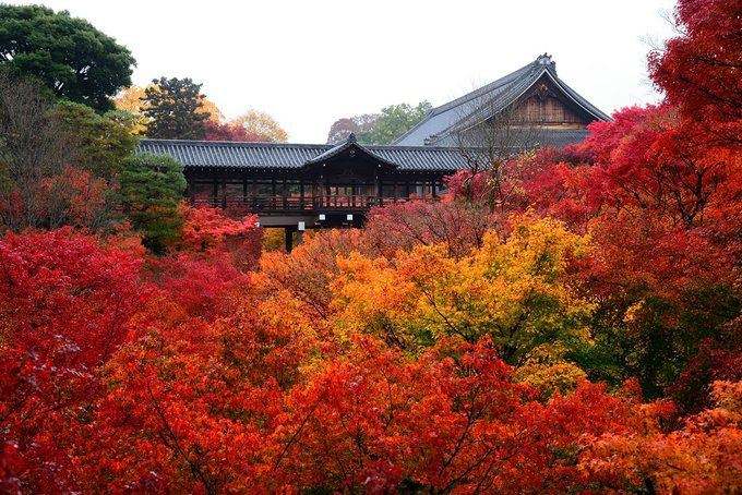 推荐在入门处通过的那条走廊上往上仰拍,我认为是此处的精华,还不需要门票相对于永观堂我觉得稍微有点逊色,但也很值得来。推荐在入门处通过的那条走廊上往上仰拍,我认为是此处的精华,还不需要门票。建议不要买门票去主殿,直接买去通天桥那边的,能上高处俯视整个园林,很震撼。