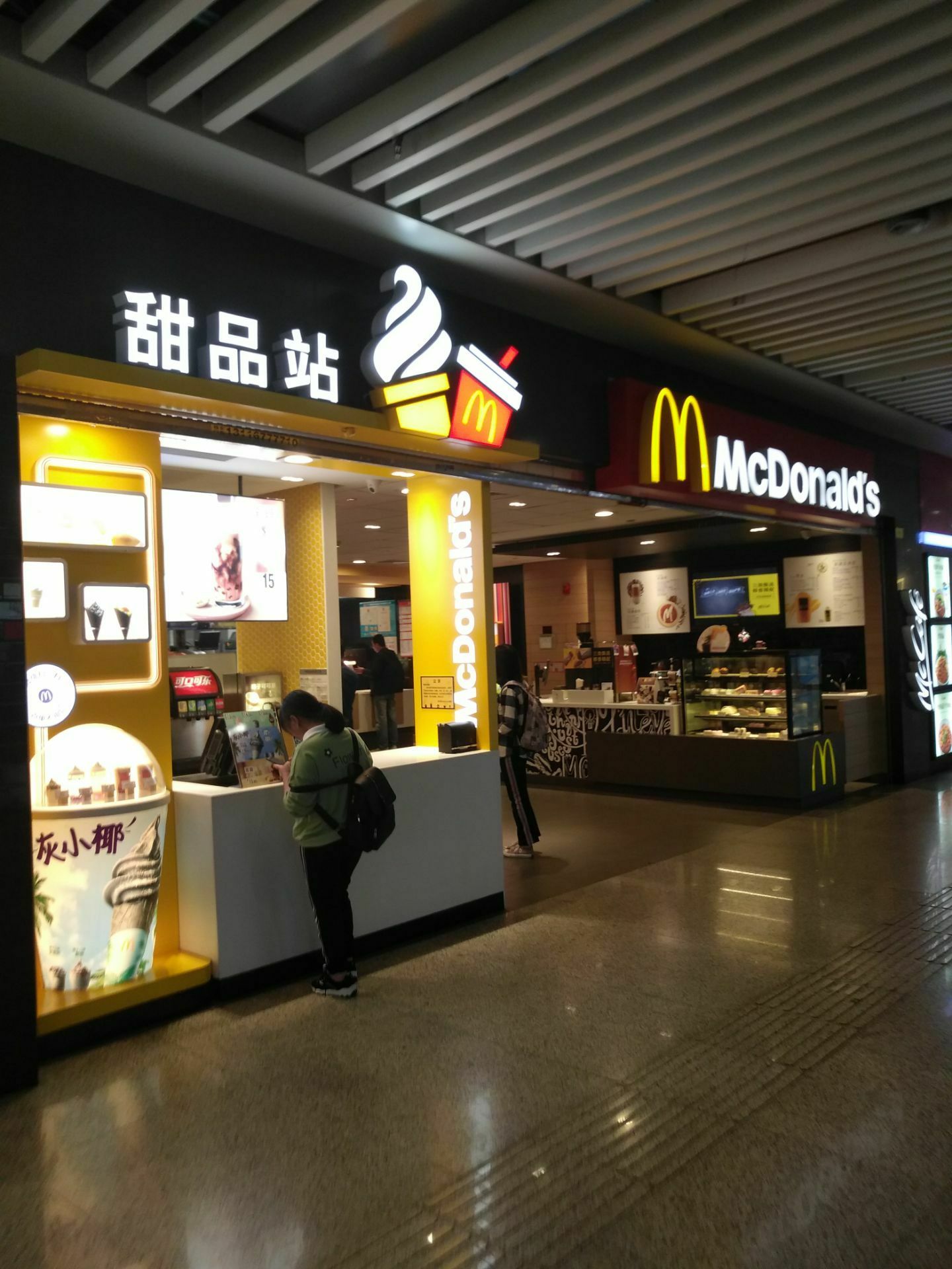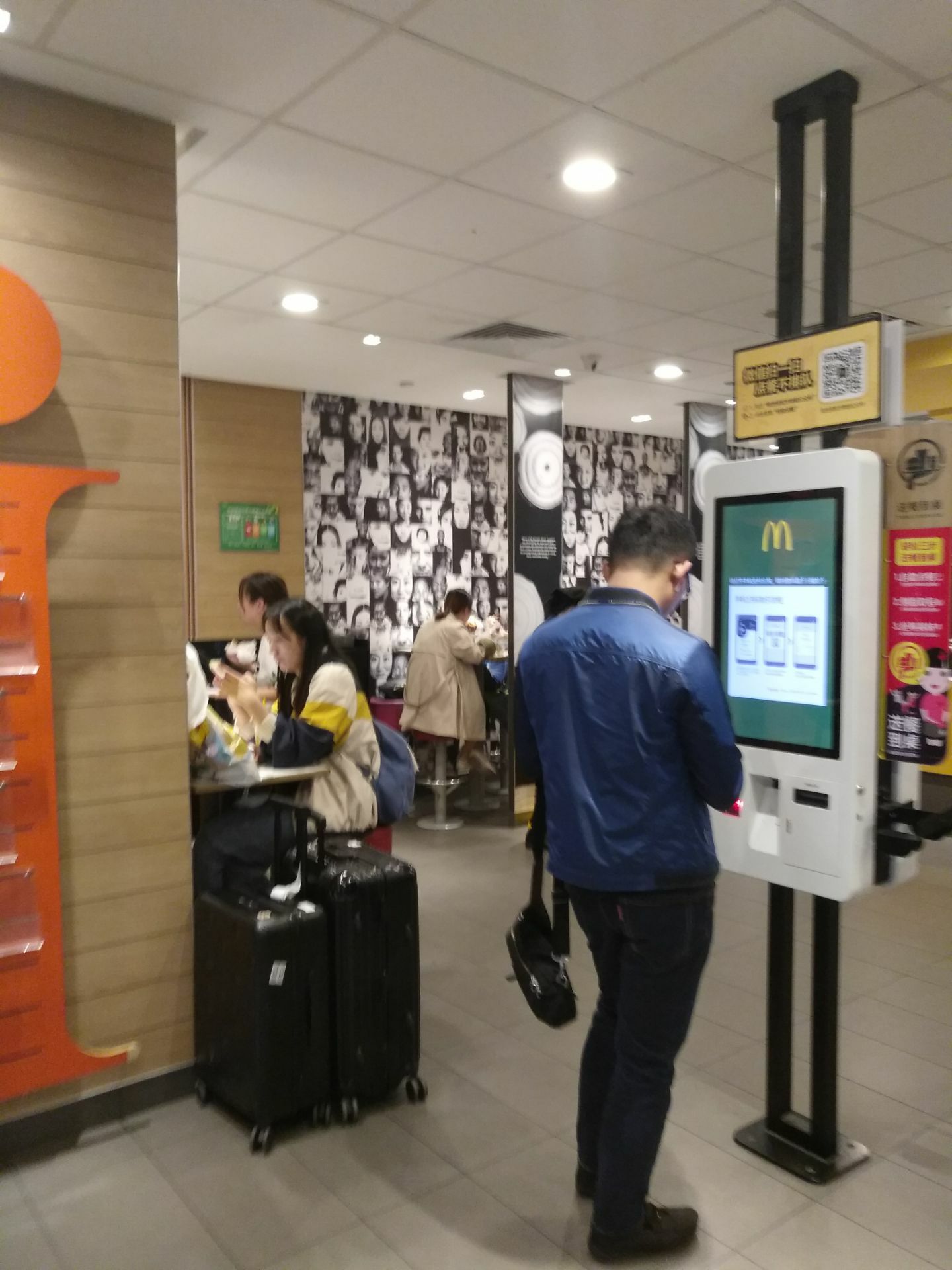 位于杭州东站到达层出站口商场附近的麦当劳门店还相对比较大,而且用手机点餐也很方便