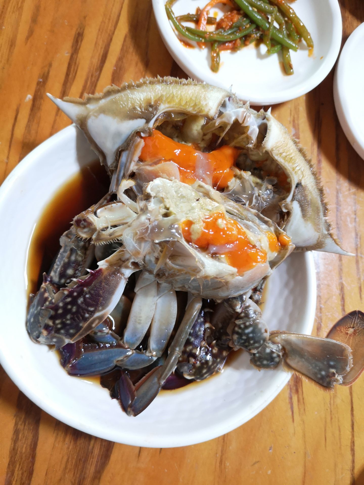 ...,看似醉蟹但是没有酒味,味道是淡淡的咸鲜,蟹膏特别丰富,拌上热热的米饭尤其美味,推荐尝试一下吧太美味了,韩国酱蟹,新鲜味美,看似醉蟹但是没有酒味,味道是淡淡的咸鲜,蟹膏特别丰富,拌上热热的米饭尤其美味,推荐尝试一下吧