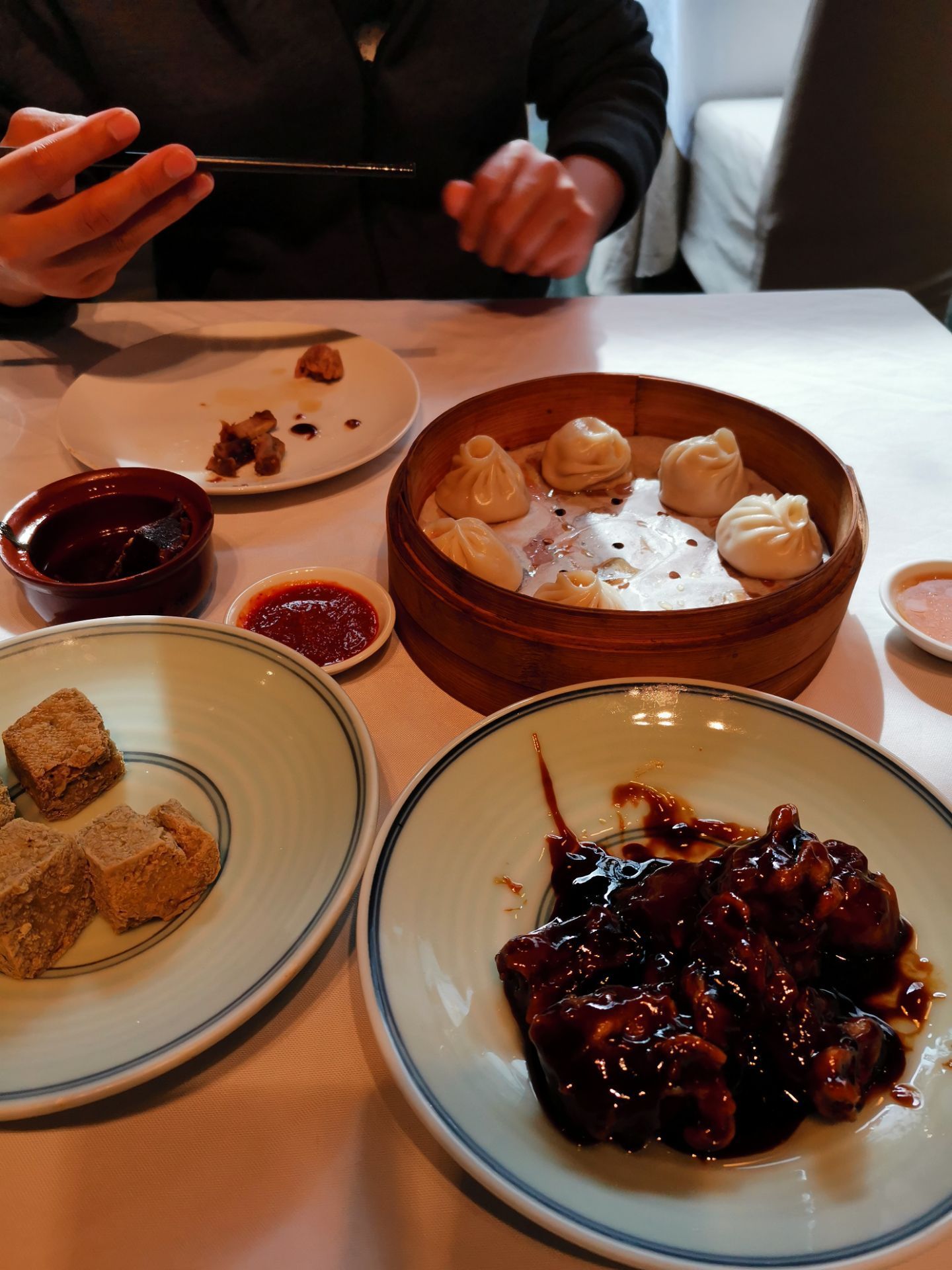 位置就在河坊街,这么好的位置竟然没人,可想而知菜品咋样了……东坡肉用山东话说“很柴”,也没味,感觉很腻;臭豆腐吃不了,上头;糖醋排骨还可以,后来会觉得腻;小笼包尚可吧…总之这顿吃的感觉挺一般。客人那么少,店员都在那拉呱,我们水都没有了也不知道给倒水,唉