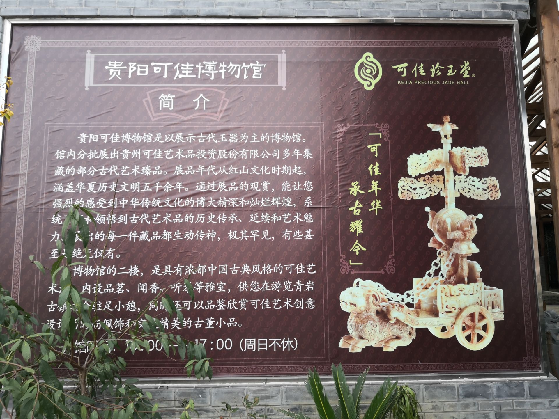 贵州可佳博物馆就在青岩镇的边上,凭自己的身份证登记就可以进去参观,里边展品不太多主要是一些瓷器...