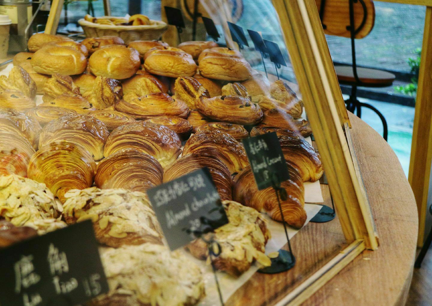 弹性的肉桂提子贝果,焦糖味道的肉桂卷,咸甜的颜值担当鹿角,还有小姐姐送到面前刚出炉的致命麦香法棍,表皮焦脆内里嚼劲十足。 来杭喝了四五杯美式这里有最喜欢的美式,三种豆子的交融醇厚又风味,不酸但浓郁。 临走再猛地吸一口气,全是小麦粉烘烤的喷香味道,再看看杯套满足得在一旁傻笑。