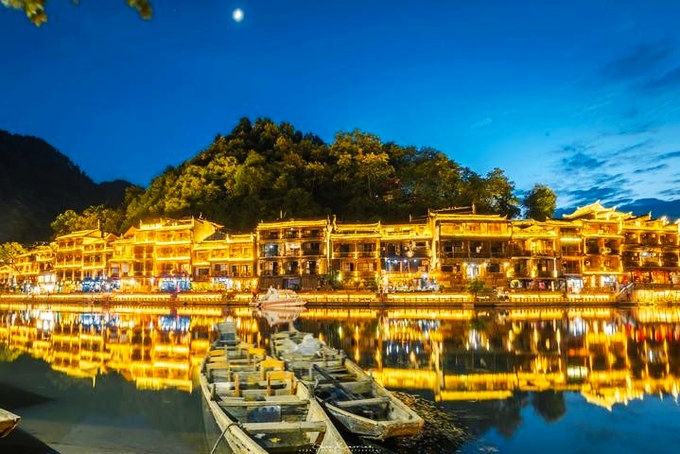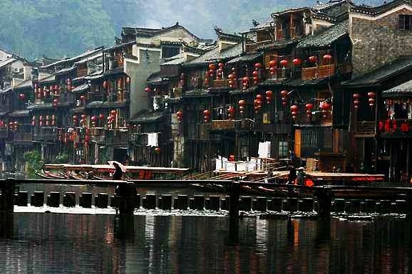 《回龙阁吊脚楼》凤凰沱江吊脚楼,倚山傍水矗千秋。串串灯笼檐上挂,悠悠河水牖前浏《回龙阁吊脚楼》凤凰沱江吊脚楼,倚山傍水矗千秋。根根木柱撑峣榭,栋栋琼阁峙岸头。串串灯笼檐上挂,悠悠河水牖前浏。垂楼倒影波纹漾,夹岸悬居壁画鎏。