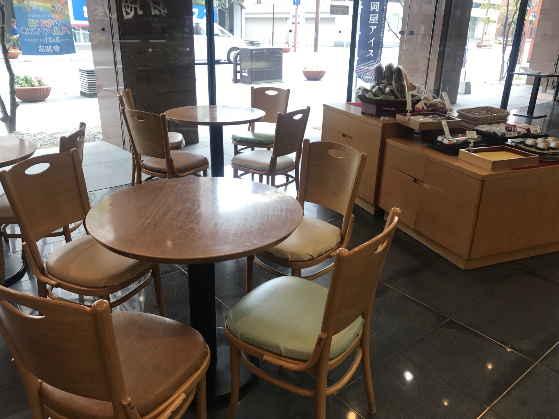【环境】沿着佐賀駅出口正中的路一直走大約五分鐘,店面宽大明亮的玻璃窗外就能看到很多誘人的点心。 【服务】是那種至上讓人舒服隨意的氛圍,进店后可以自由選擇,店员不会跟着盯著,特別好。 完成購物之后,店員告訴我在一角有咖啡和茶可以免費自助饮用,而且有餐桌椅,真是很好贴心。 【口味】和式的果子相对甜度較高,必須配茶。金秋時节正是粟子成熟季,所以有不少粟子口味的西點,很不錯。