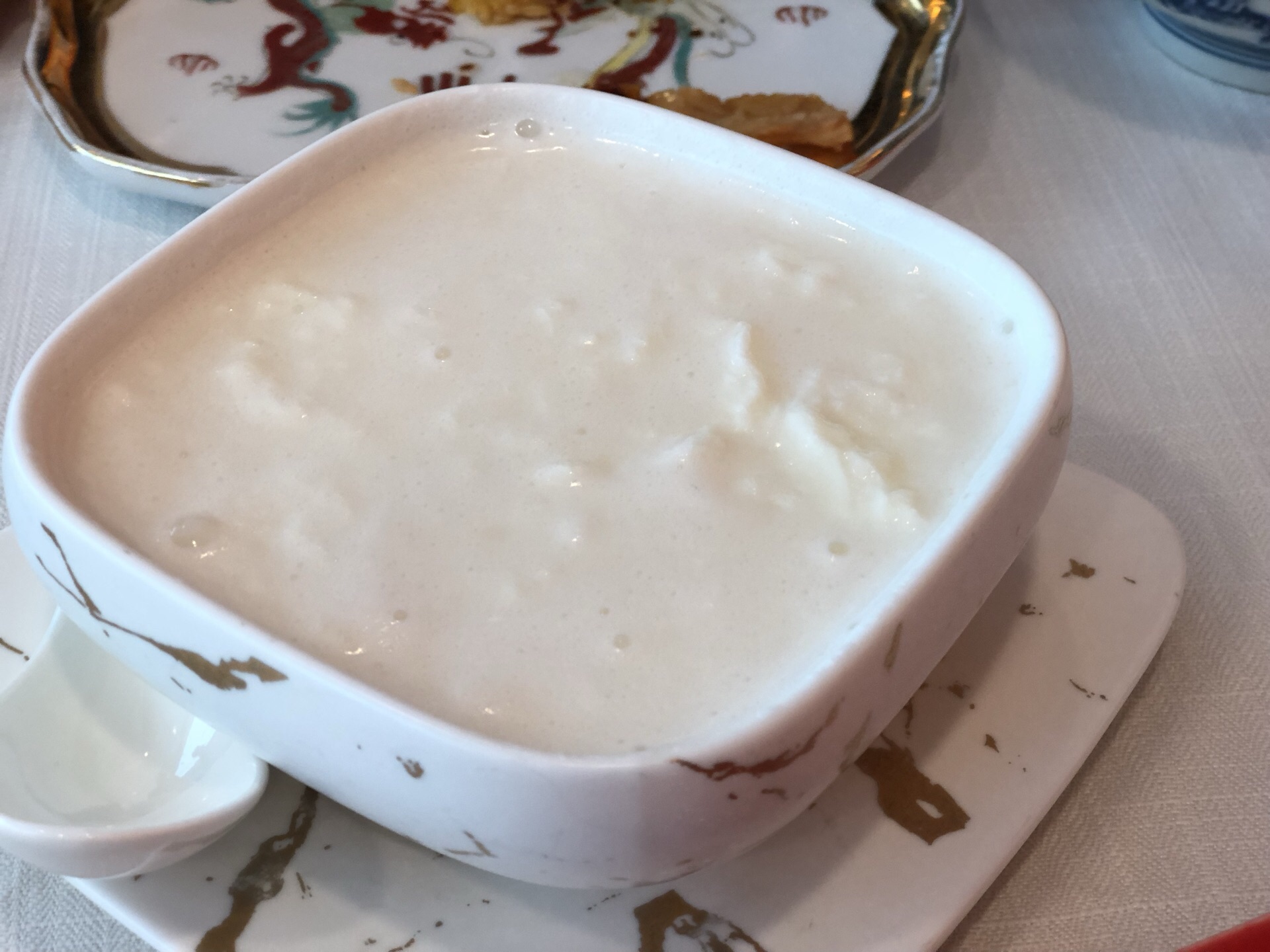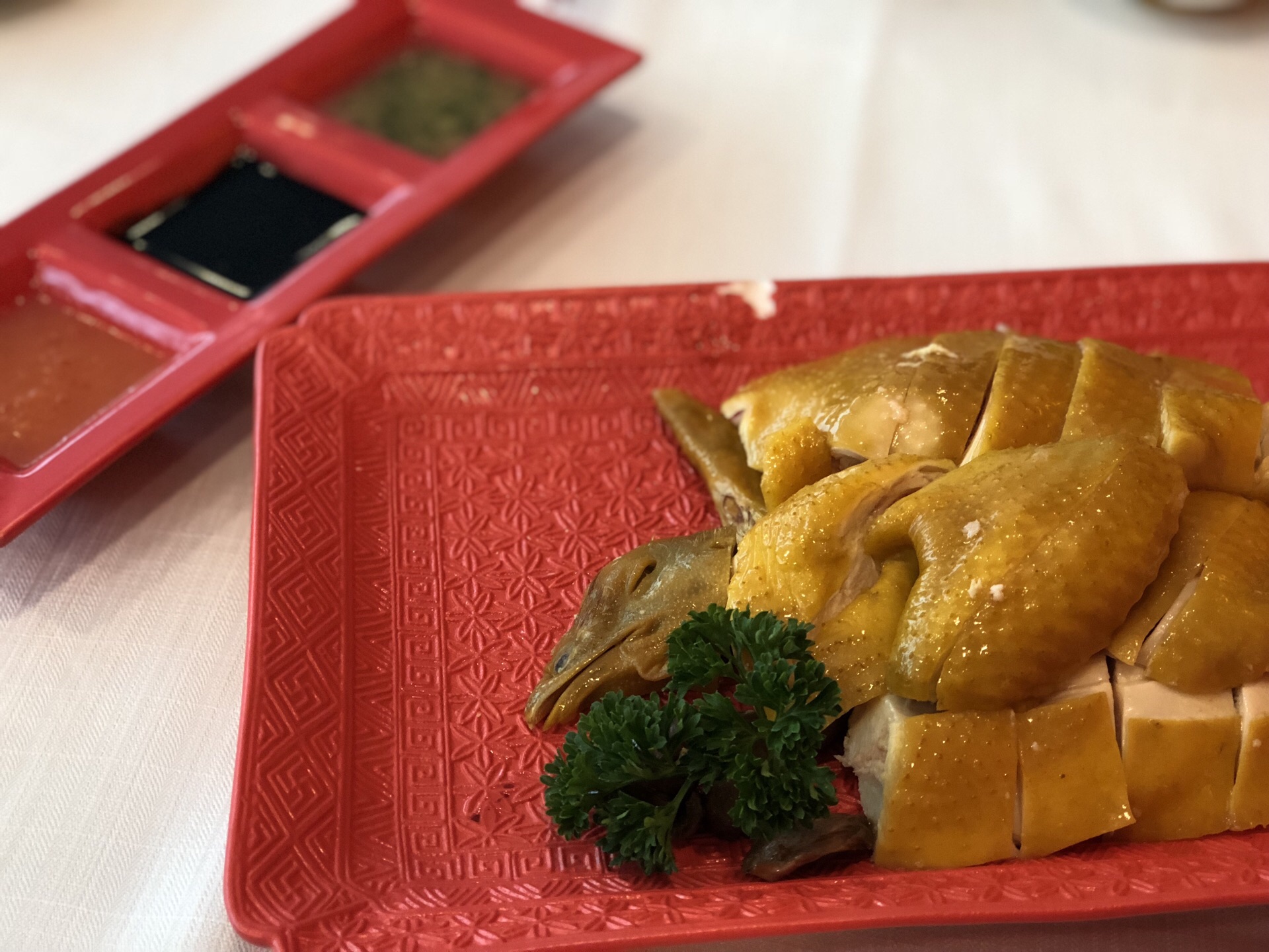 一直想到海云陈记吃海南鸡,正好看到港汇有活动,这次正好。 店在港汇恒隆广场六楼,没等位,坐在靠商场的外面位置。点了金牌海南鸡158半只,加了飘香鸡油饭12元一碗,鸡肉很嫩,饭很香。再点个甜品蛋白杏仁茶30元,是热的,也不错。