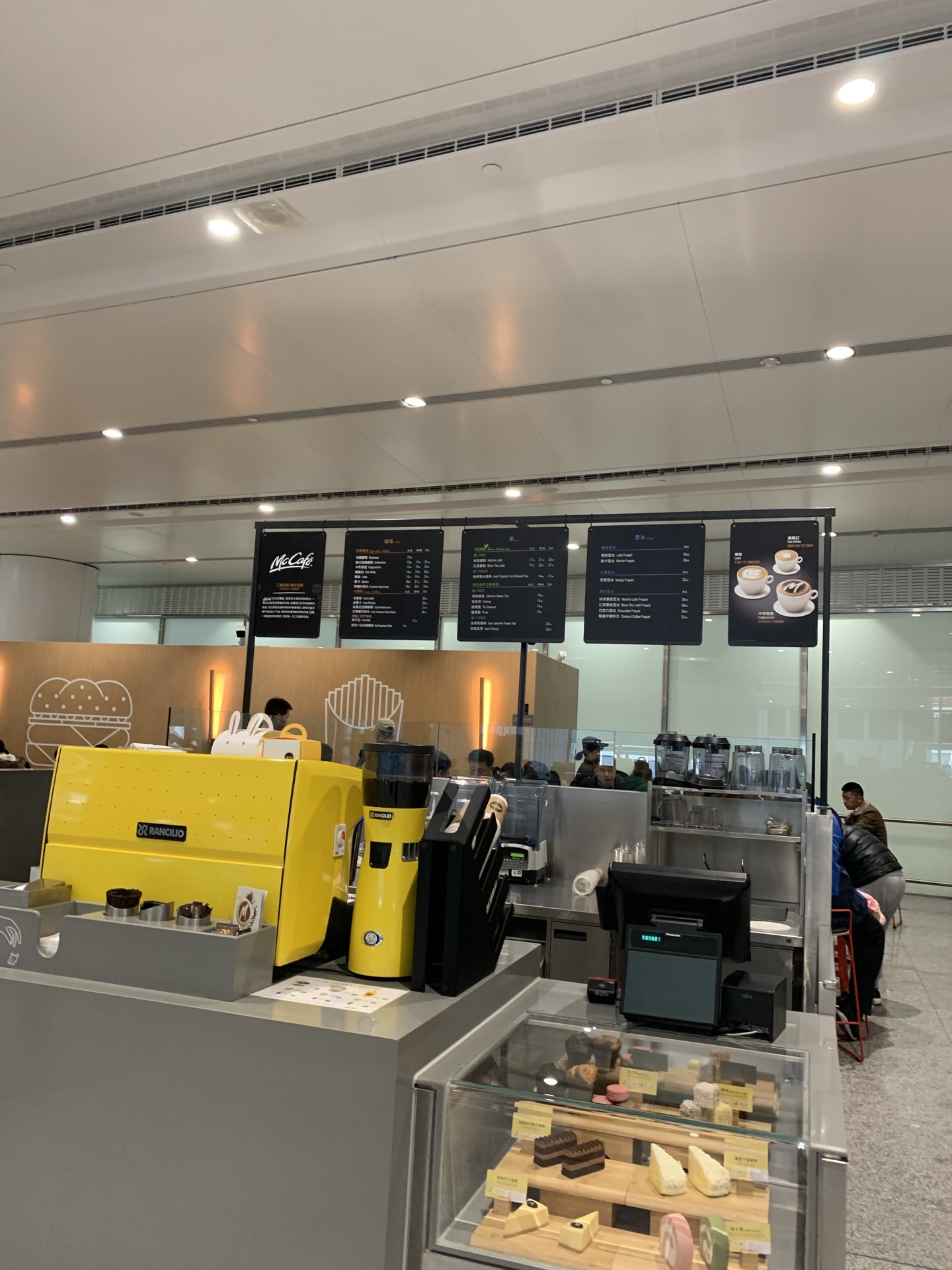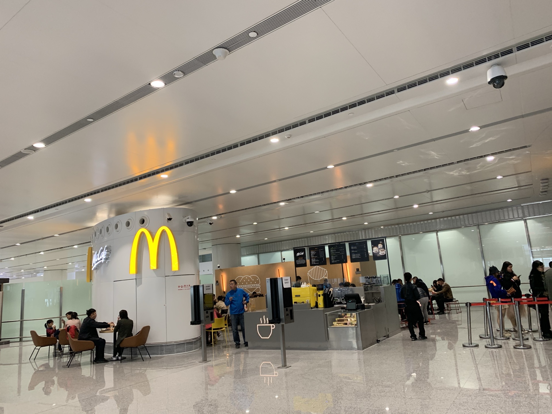 麦当劳在大兴国际机场的2层,面积比较大,开放式的,这也有麦当劳Cafe,点餐在一个窗口,座位都在外面麦当劳在大兴国际机场的2层,面积比较大,开放式的,这也有麦当劳Cafe,点餐在一个窗口,座位都在外面。Cafe在单独窗口。