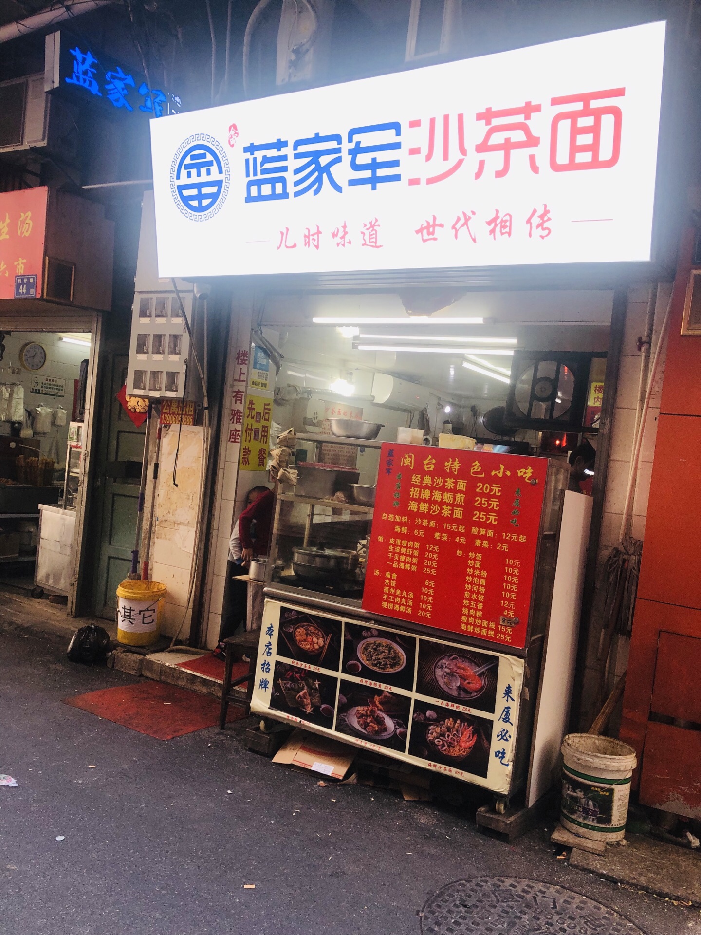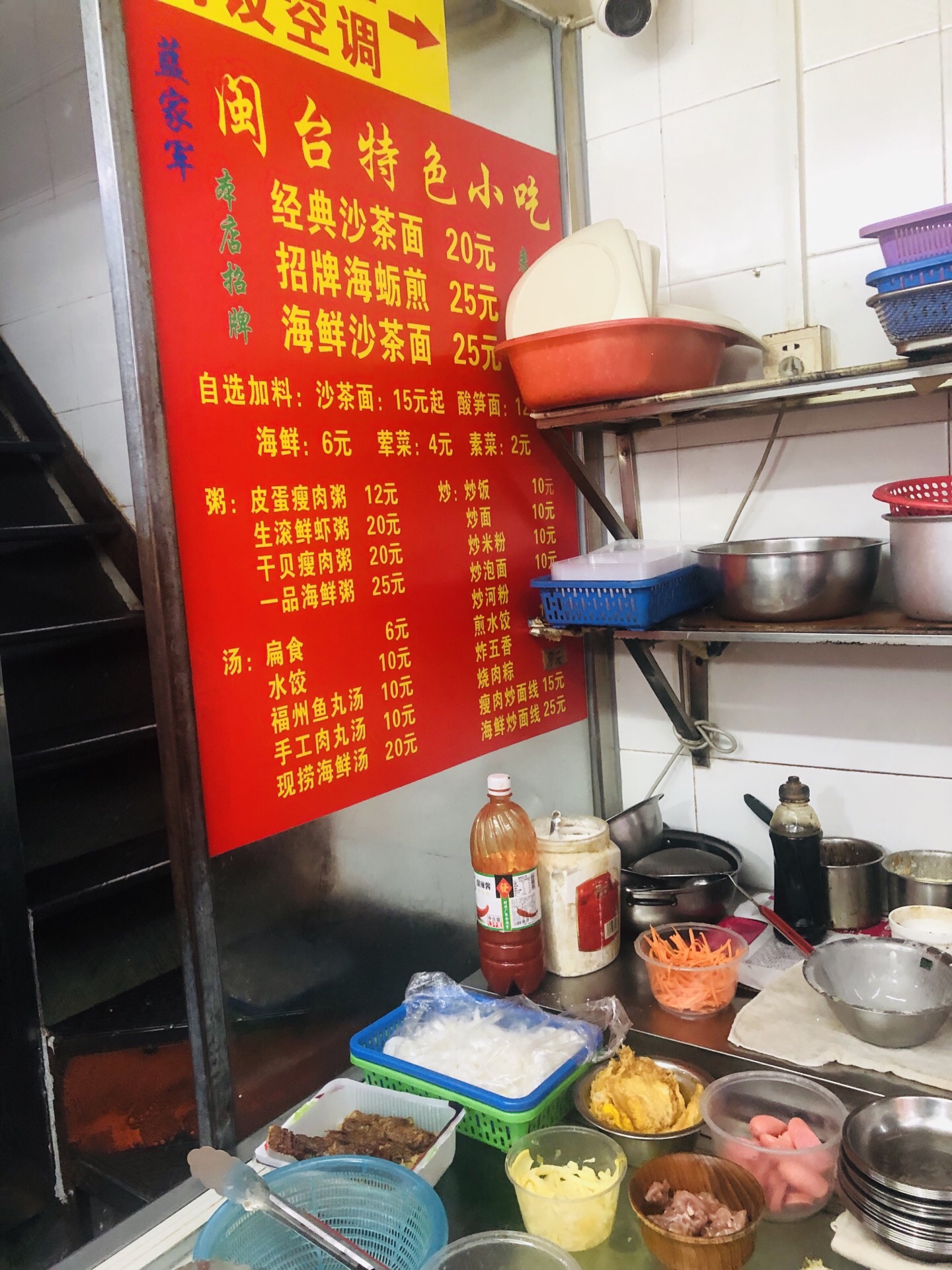 蓝家军海鲜沙茶面躲在中山路泰山路巷子里面,面积不是很大,但是有二楼可以坐,这家沙茶面店看起来又很多年历史,他们家的汤底确实很有特色,沙茶汤非常的浓郁好喝,而且配料也不少,看起来非常的新鲜,服务态度也可以。