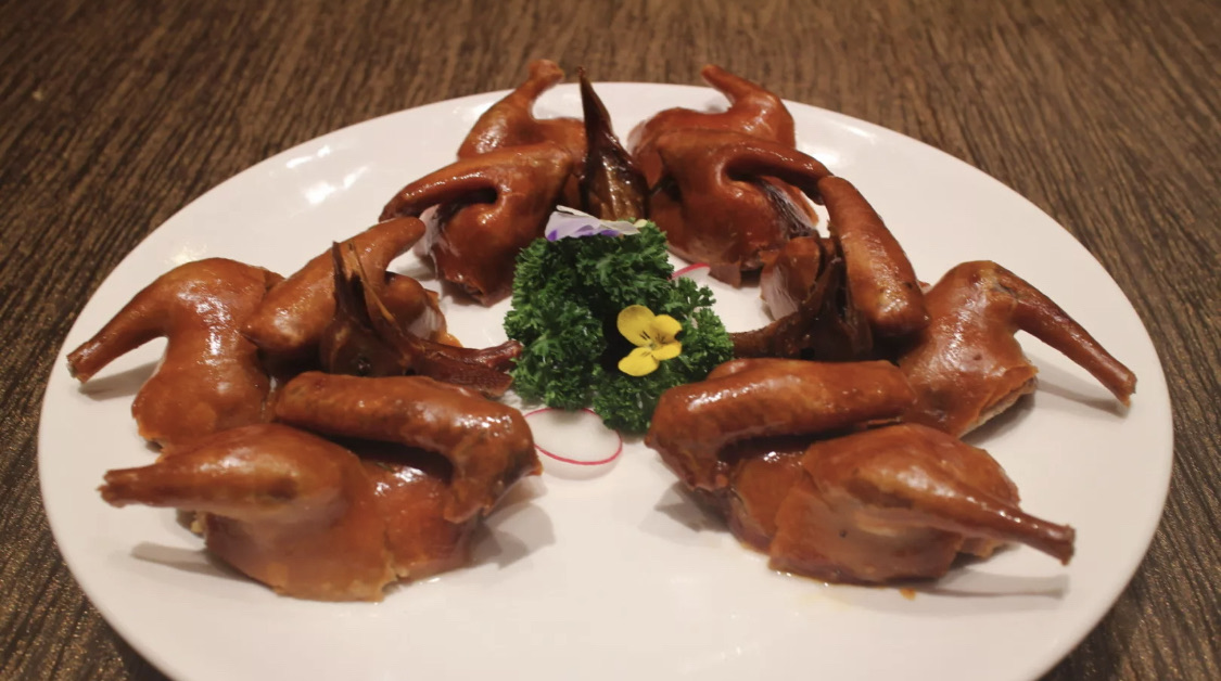 乐忻味之楼,粤菜馆,比较高端。玻璃乳鸽,表皮十分香脆,肉质香嫩可口乐忻味之楼,粤菜馆,比较高端。葱香虫草凉拌杏鲍菇,淋上酱汁,一道开胃的凉菜;胶原蛋白花胶汤,很浓稠,满满的胶原蛋白;玻璃乳鸽,表皮十分香脆,肉质香嫩可口。