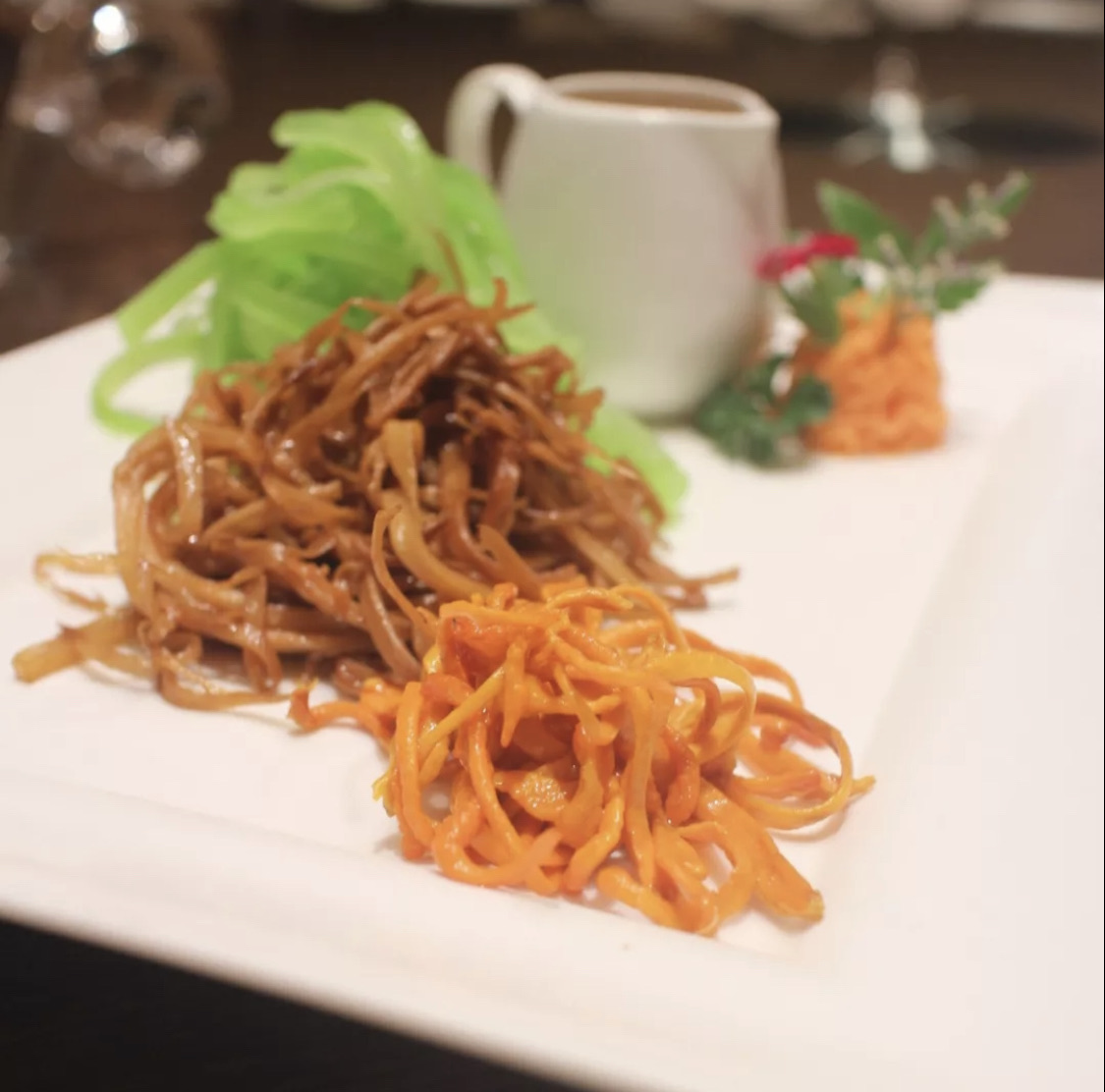 网友2019-11-10乐忻味之楼,粤菜馆,比较高端。玻璃乳鸽,表皮十分香脆,肉质香嫩可口乐忻味之楼,粤菜馆,比较高端。葱香虫草凉拌杏鲍菇,淋上酱汁,一道开胃的凉菜;胶原蛋白花胶汤,很浓稠,满满的胶原蛋白;玻璃乳鸽,表皮十分香脆,肉质香嫩可口。
