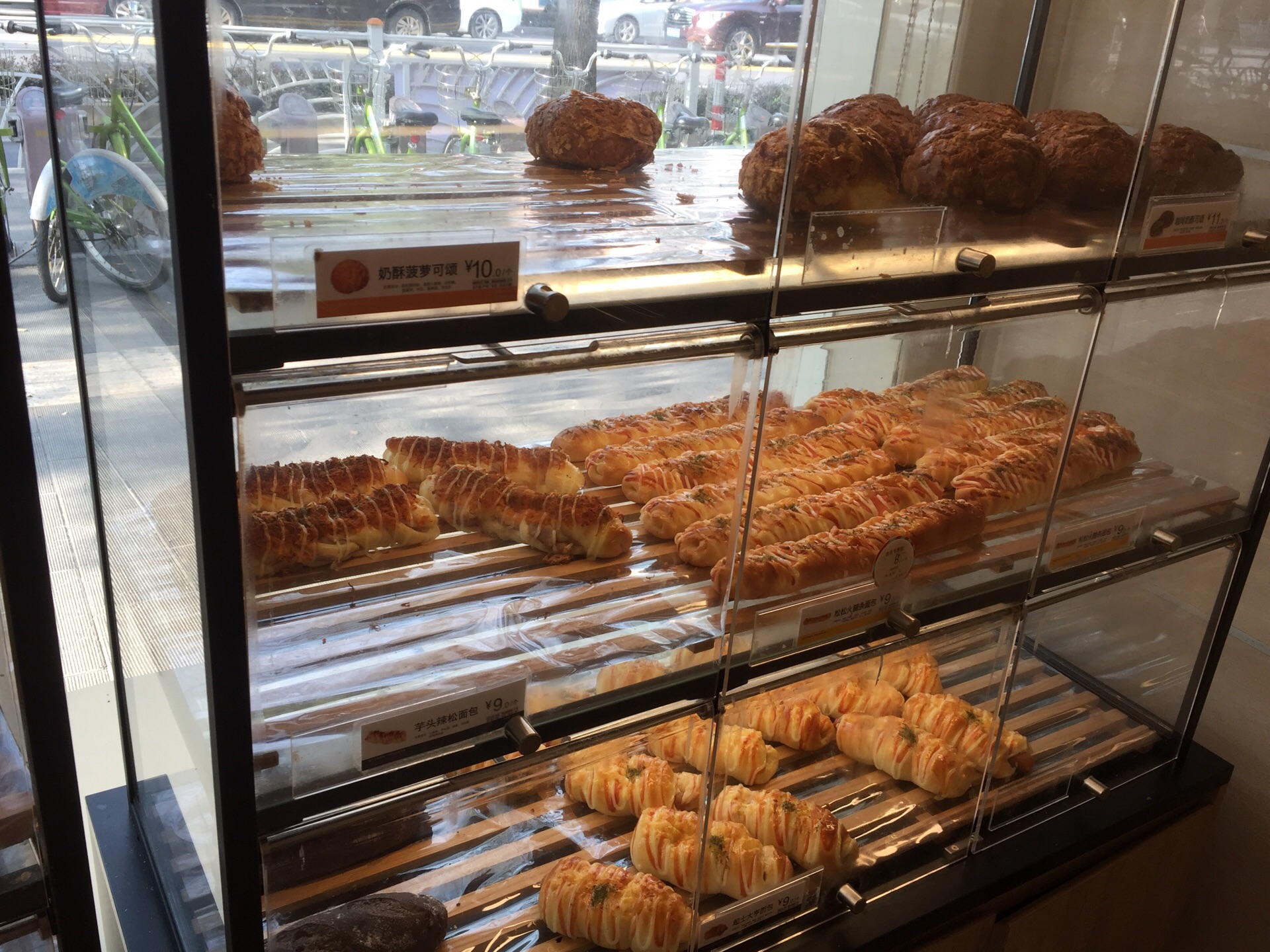 今天陪孩子参加考试,在星光中学,所以有空在旁边走走,正好路过水清路的85度c和老昌盛汤包馆相邻。也因为考试的原因,很多家长直接在里面休息,所以一味难求,进去参观了一下,现在的消费水平挺高呀,一个面包都超过10块。