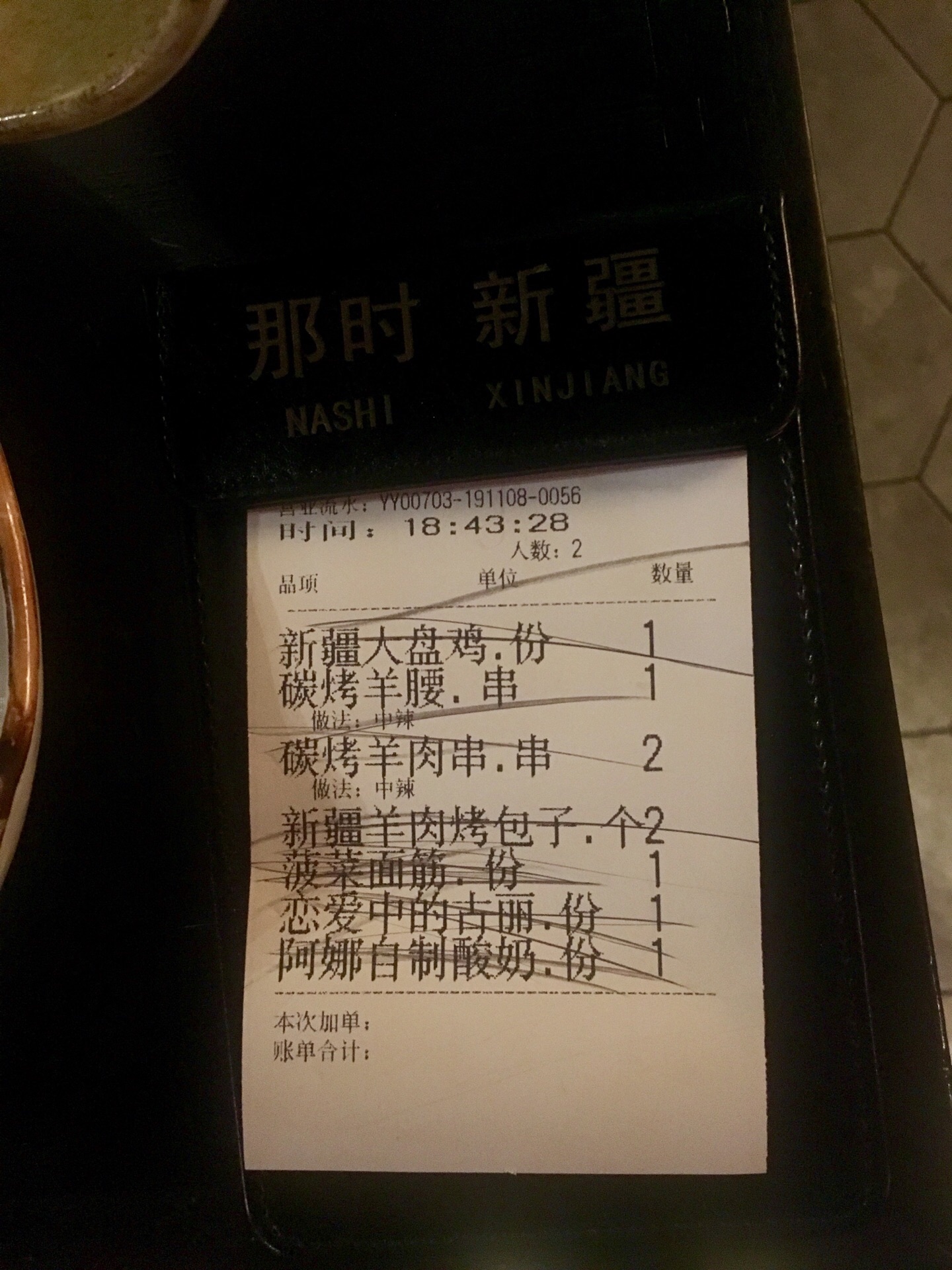 好久没吃到这么正宗的新疆味了,下班跟朋友过来尝尝,结果点了满满一桌,大菜硬货主食甜品点心都给安排上了食欲大开 羊腰羊肉串大盘鸡必须点的,酸奶也是个特色哦很解腻~ 恋爱中的古丽,第一次吃,有点儿像cheese又综合了奶油的绵密细腻的口感,很棒!