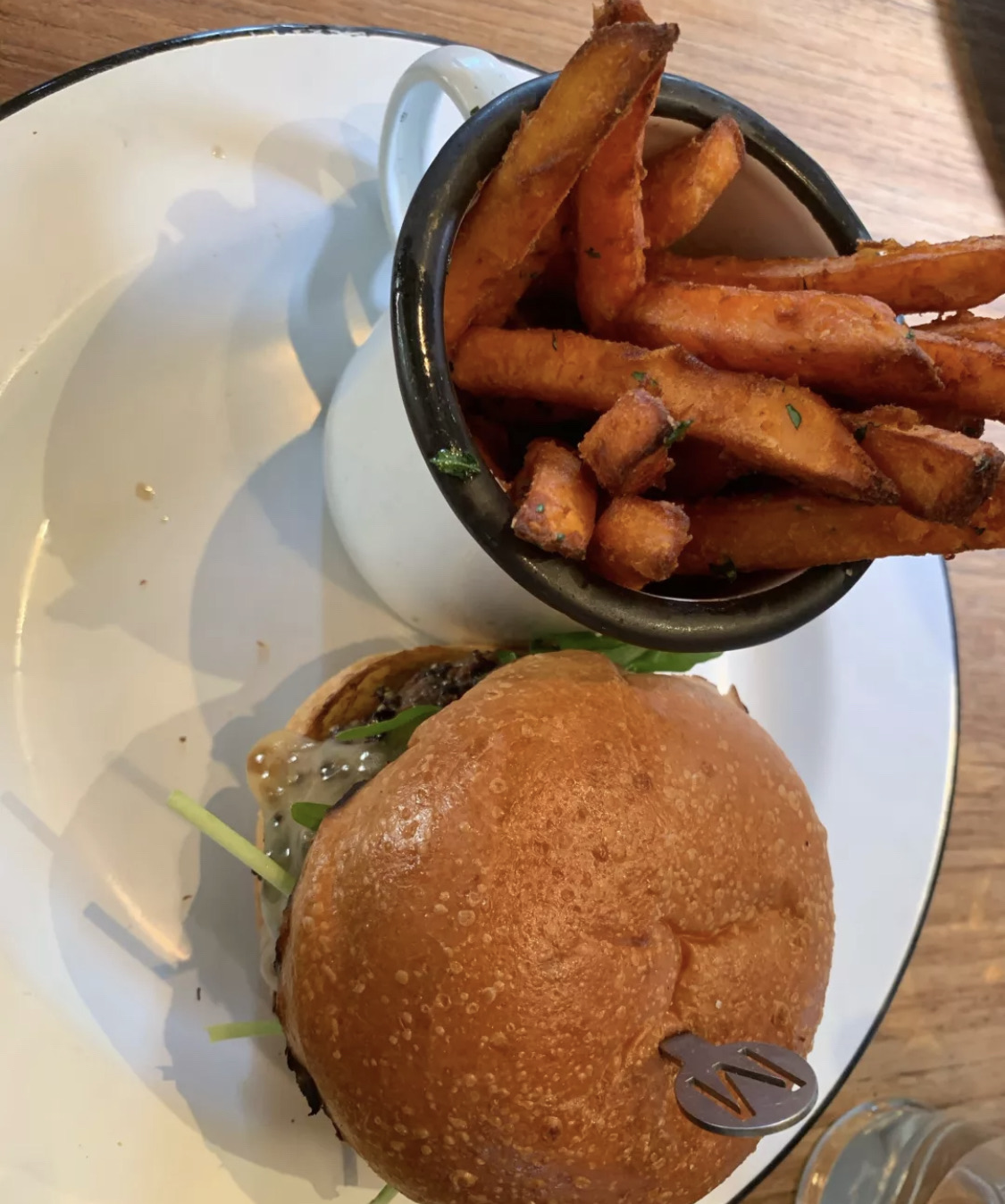 网友2019-11-10Liberty(上海商城店),米其林推荐。牛肉汉堡分量非常大,牛肉可以选七分熟尚牛社会 Beef & Liberty(上海商城店),米其林推荐。牛肉汉堡分量非常大,牛肉可以选七分熟;搭配的薯条炸的香香脆脆的;柠檬特饮,汽水搭配酸酸甜甜的柠檬味,加冰喝起来很爽。