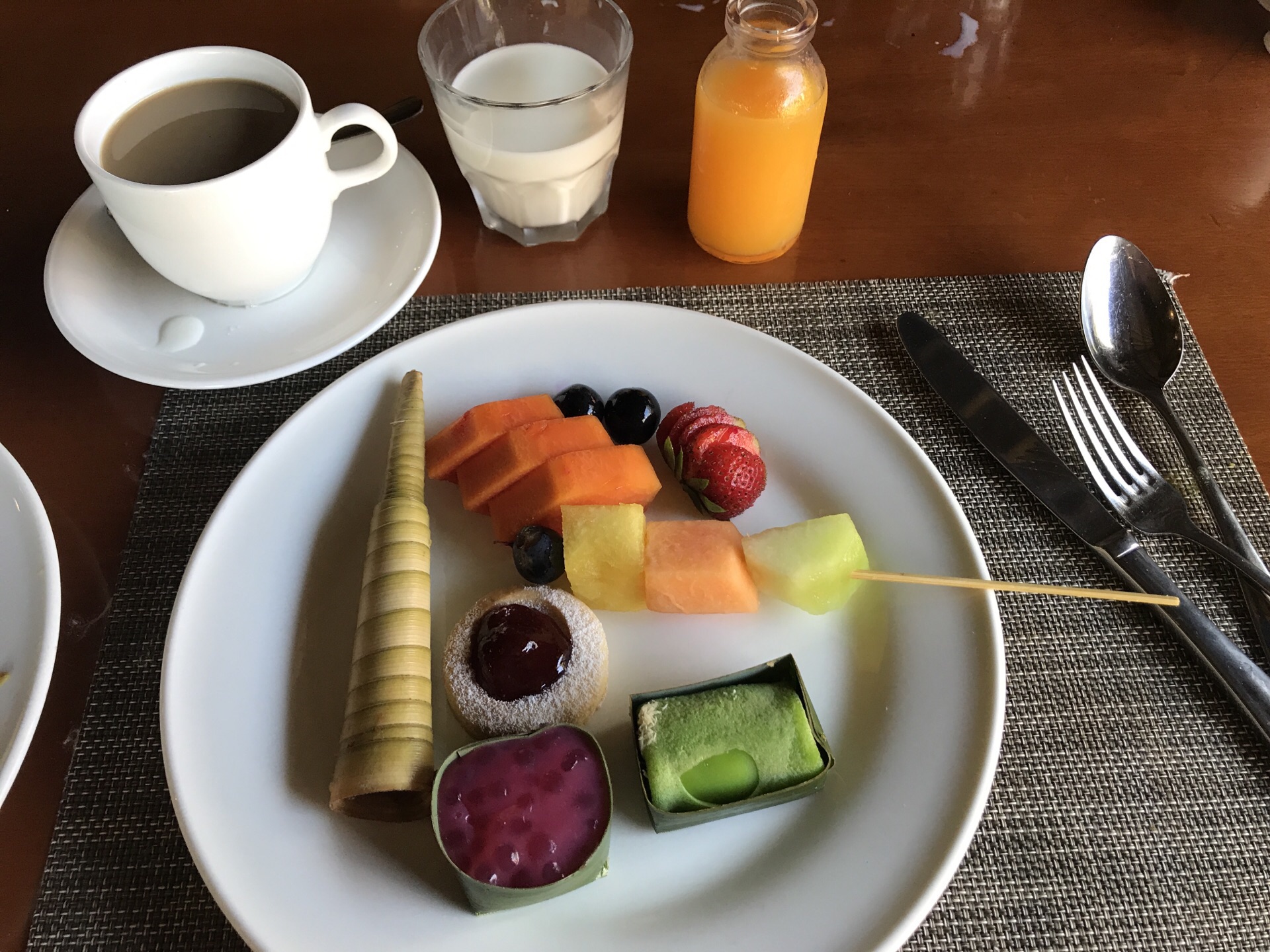 美味的自助早餐除了中式、西式、日式的,还有印度菜和印尼菜,很丰盛。 喜欢印尼糕粿,大多都用了椰奶或椰丝,椰味香浓,甜度适中。 冷热饮料也有许多选择,除了,咖啡、茶、各种果汁和牛奶、可以尝尝印尼特别的保健饮料 Jamu。 我们住在巴厘岛阿雅娜度假村酒店的价格包括自助早餐,就在Padi 主餐厅。餐厅蛮大的,可以容纳两百人,用餐环境优美,坐在这里吃饭,胃口大开。