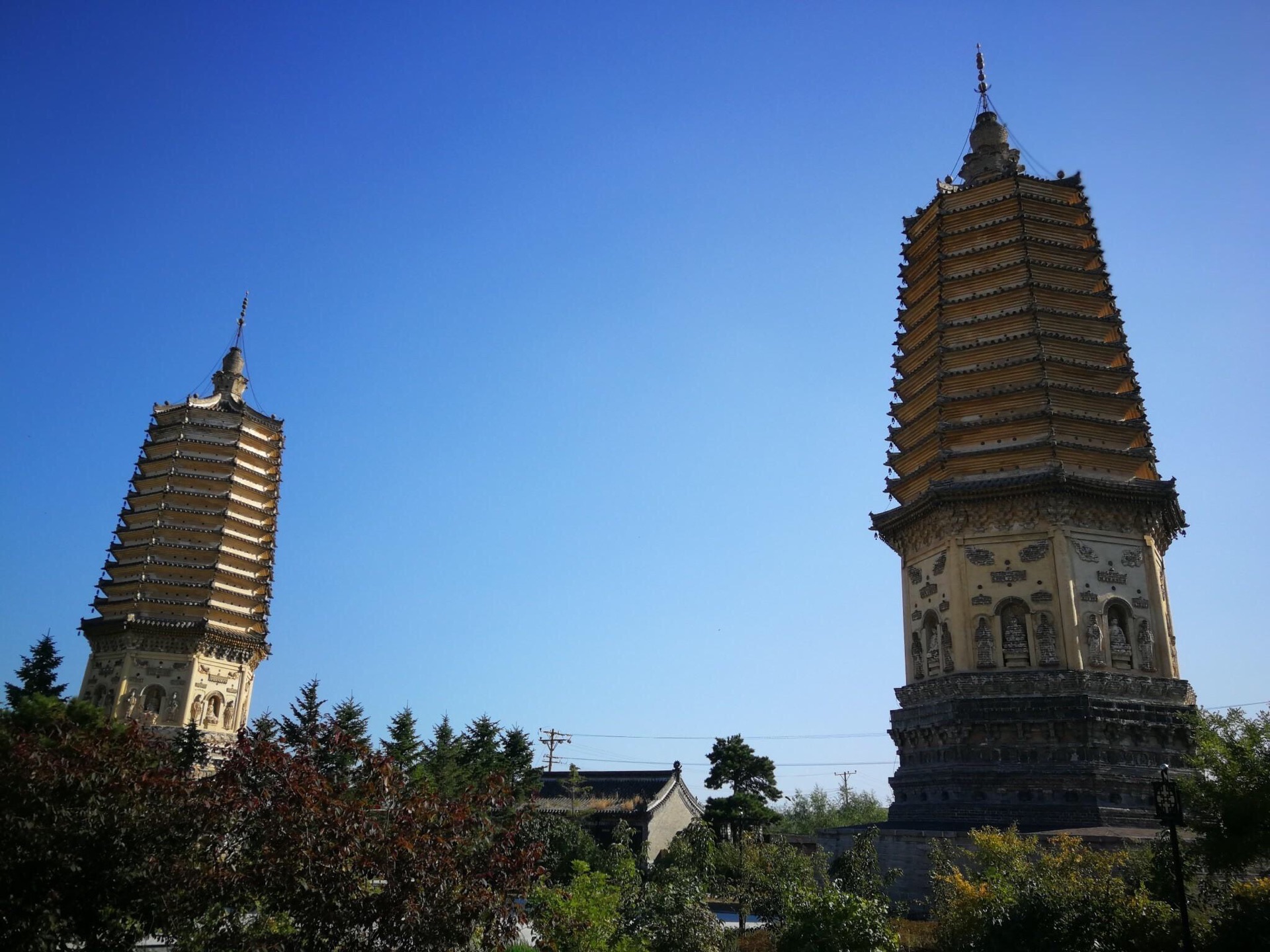 双塔相距43米,是我国境内唯一的辽代对峙式大型双塔,也是我国三千多座古塔中一对著名的姐妹塔双塔相距43米,是我国境内唯一的辽代对峙式大型双塔,也是我国三千多座古塔中一对著名的姐妹塔。从塔的结构和风格看,应属辽代中晚期的遗物。人不多,我们很喜欢这里。