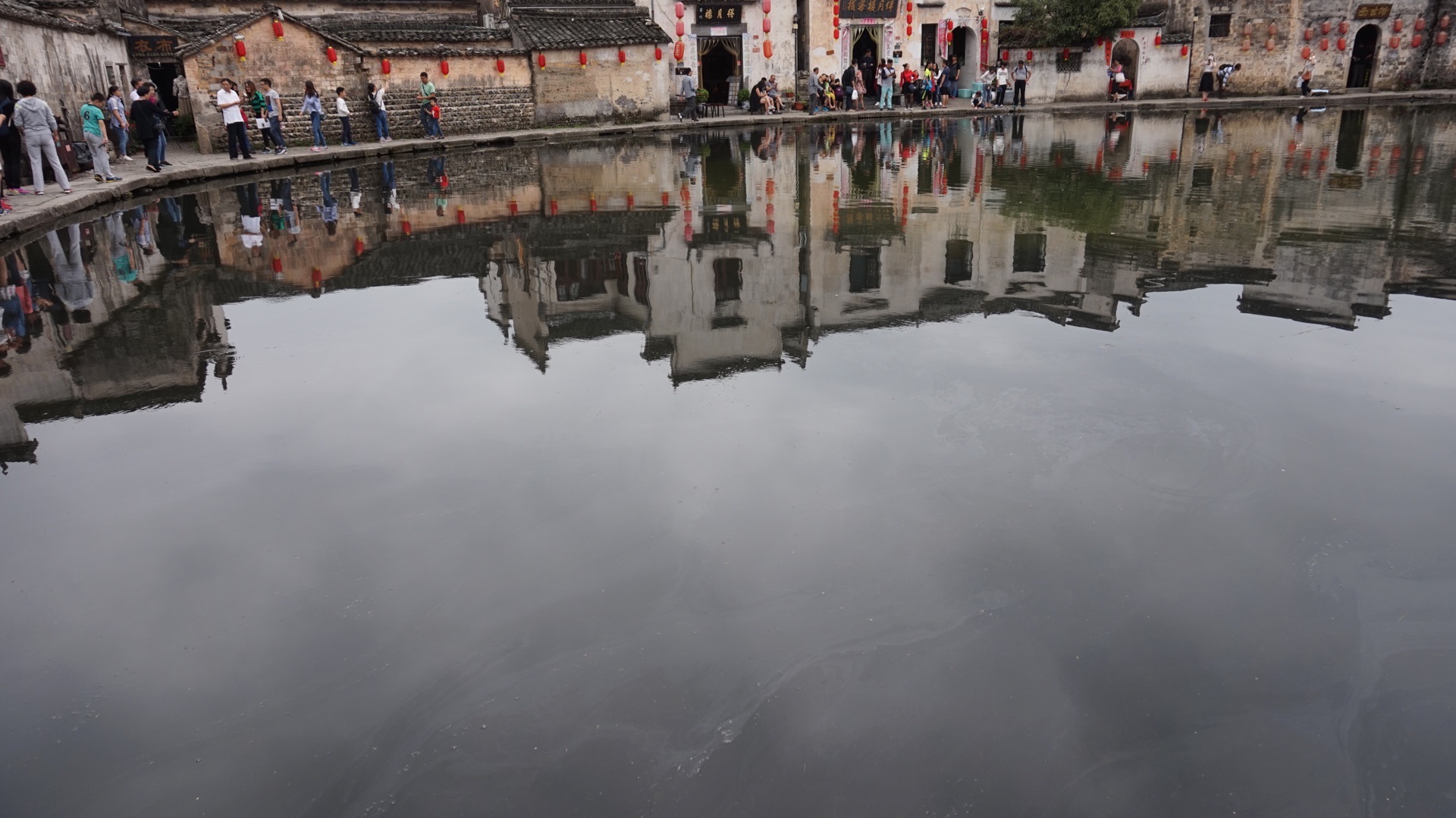 月沼在宏村最中心的地方,祠堂的正门就对着它,四周环绕着的民居建筑倒影在水中,煞是好看漂亮! 清晨的时候还有很多本地居民在里面洗东西,保护的很好,是重要景观,所以毫无杂物,甚是干净清爽! 十一的宏村全是人呐,看我的照片就知道了,如果想很安静的游览,那就找个非周末吧……