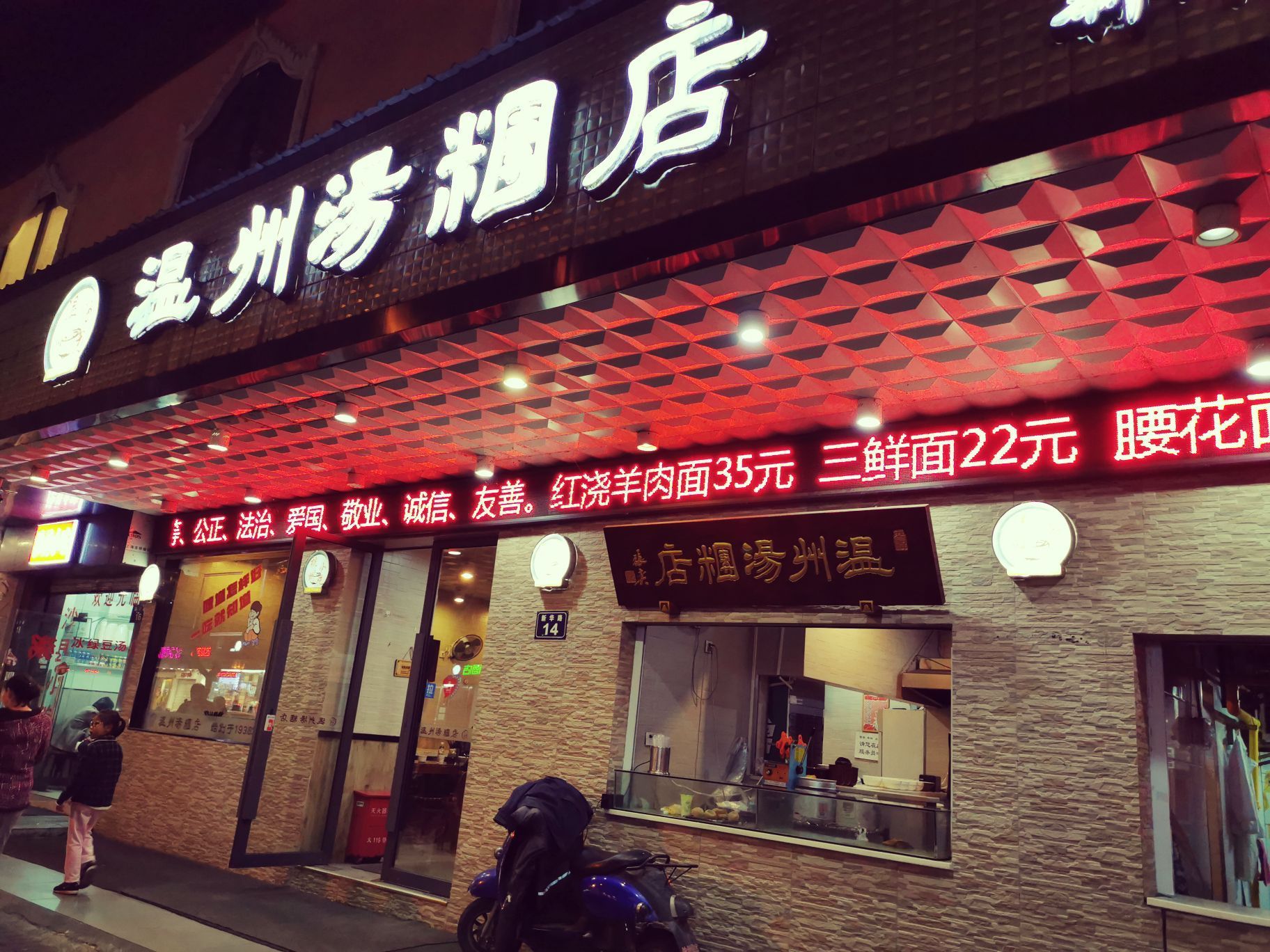 温州汤团店,新华路14号。 从童年到中年,它的春夏秋冬、日日夜夜、我不曾错过,也有幸见证。 24H的经营模式,仿佛陪伴杭州的十二时辰,清晨、凌晨、黎明、夜深,它30年如一日,把小吃做的如此认真。 又是一个加班夜,新华路的老店多半关了门,温州汤团店的招牌,在夜色里如此温存。 |鸭血粉丝^5元一碗。软糯的粉丝、嫩嫩的鸭血、撒上葱末,味道平淡,亲切熟悉,倒也圆满。 温州汤团店的十二时辰,我不愿意错过每一个时辰。