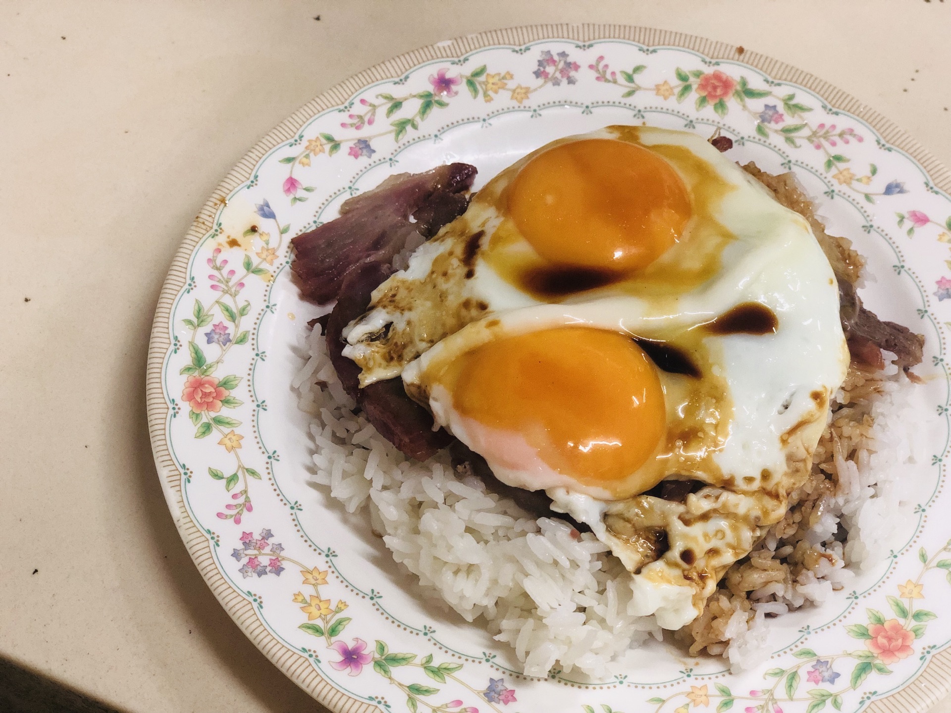 离开澳门前拖着厚重的行李箱来打卡 门面非常窄小,排队的人延伸至门外 一看这阵容我们就知道应该来对了地儿 最好两人协作 一人排队点单一人盯着哪桌客人起身马上过去占座~ 基本上都是冲着图一的「叉烧双蛋饭」来的把~ 还蛮新鲜的吃法 半熟的双蛋 厦门几乎吃不到呀。 很有食欲哦~ 记得要趁热 不要为了合照影响口感呼 是地道的港式咖啡厅啦