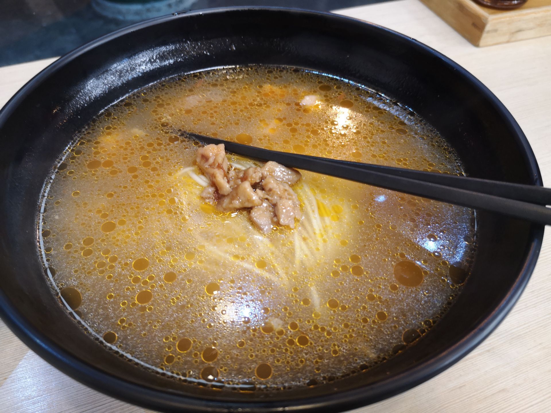 在工作日的五点半进店,一楼都快坐满了。 店分上下两层,生意一直很好。 辣肉面也比较淡