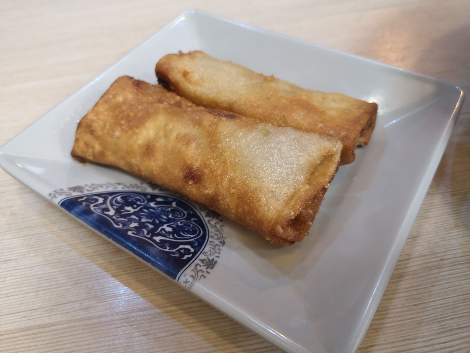 西康路海防路口的王家沙也算老字号,在那里开了很久。老房子都已经装修好几次了。 店分上下两层,生意一直很好。 在工作日的五点半进店,一楼都快坐满了。 这里的小笼和春卷都是蟹粉的,要了蟹粉春卷,一点蟹粉味都没有。 辣肉面也比较淡。