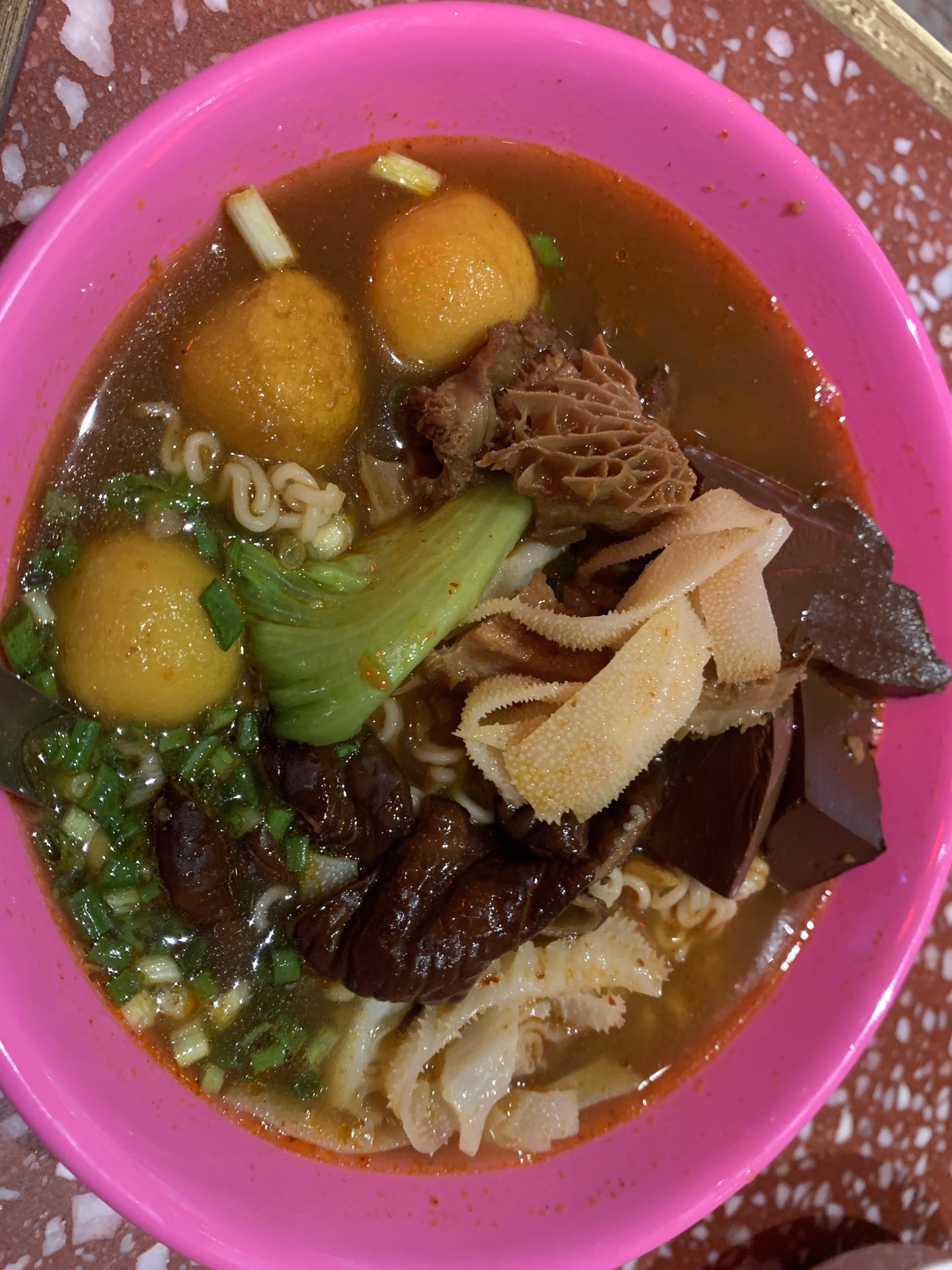 很长时间没去了。这次过去纯属偶然。好多单加的料都没有了。尤其是鱿鱼须。肥肠得味道有点大。其他还行吧。味道没什么变化,还是推荐吃公仔面配咖喱辣汤锅底。去店里时候我们第一桌,后来才陆陆续续进了几桌。比以前客流减少了。炸鱼皮还是很好吃。