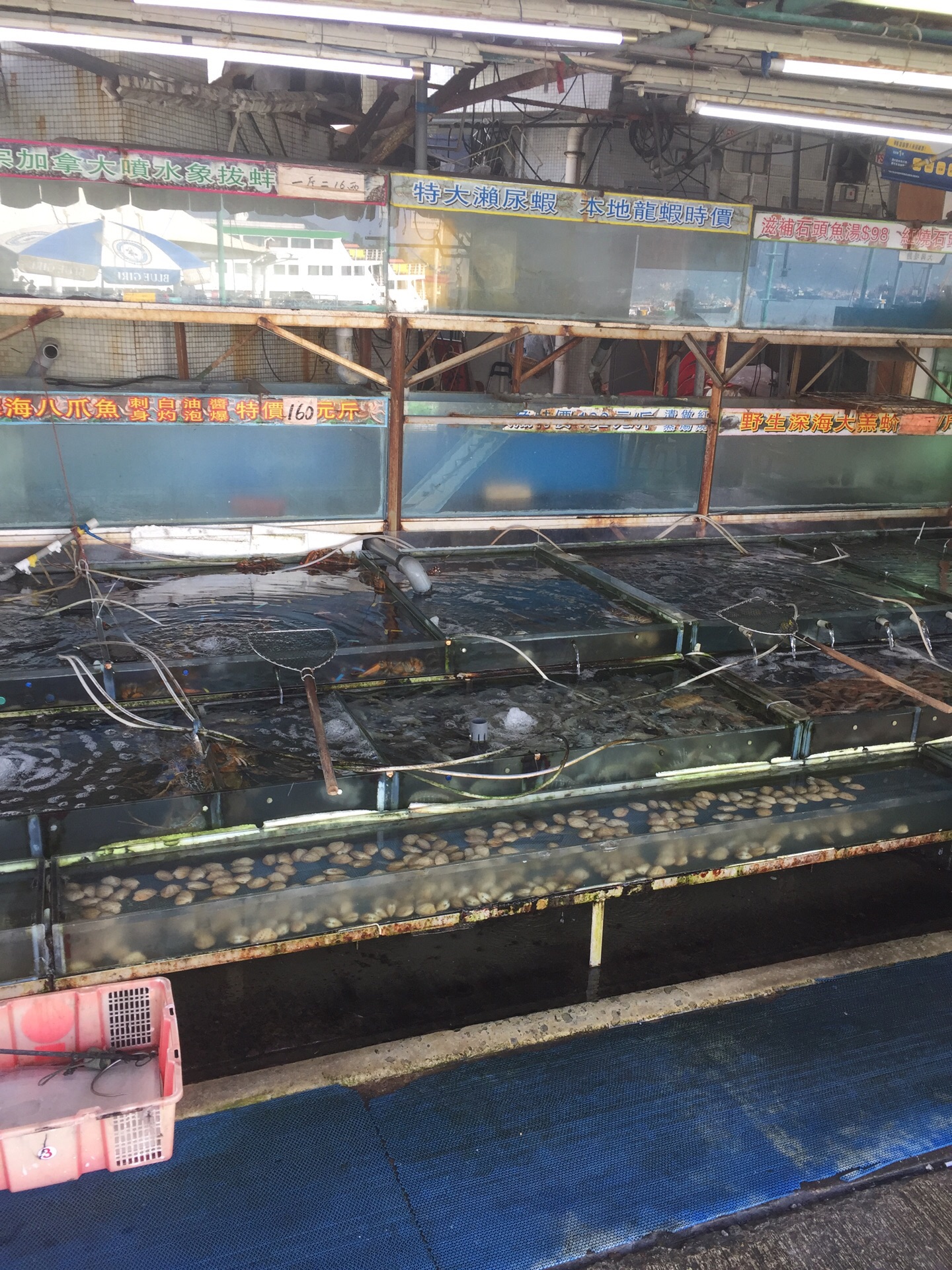 网友2019-11-16长洲海鲜街位于渡轮码头附近,走路过去两分钟就到了长洲海鲜街位于渡轮码头附近,走路过去两分钟就到了。进去会看到不同的海鲜酒家,门外有大鱼缸养着不同的海鲜,即点即做,价格就不大便宜。