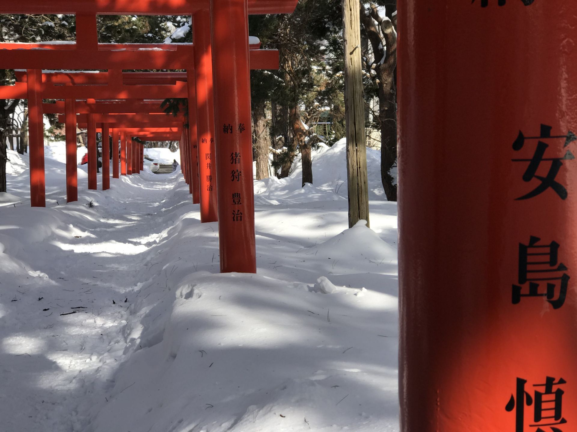 札幌的这个是非常非常小的一个伏见稻荷 在东南部,位置比较偏,鸟居大概就三四十个,走到顶端是一个...札幌的这个是非常非常小的一个伏见稻荷 在东南部,位置比较偏,鸟居大概就三四十个,走到顶端是一个很小的神社,没别的了,不建议专程游玩。