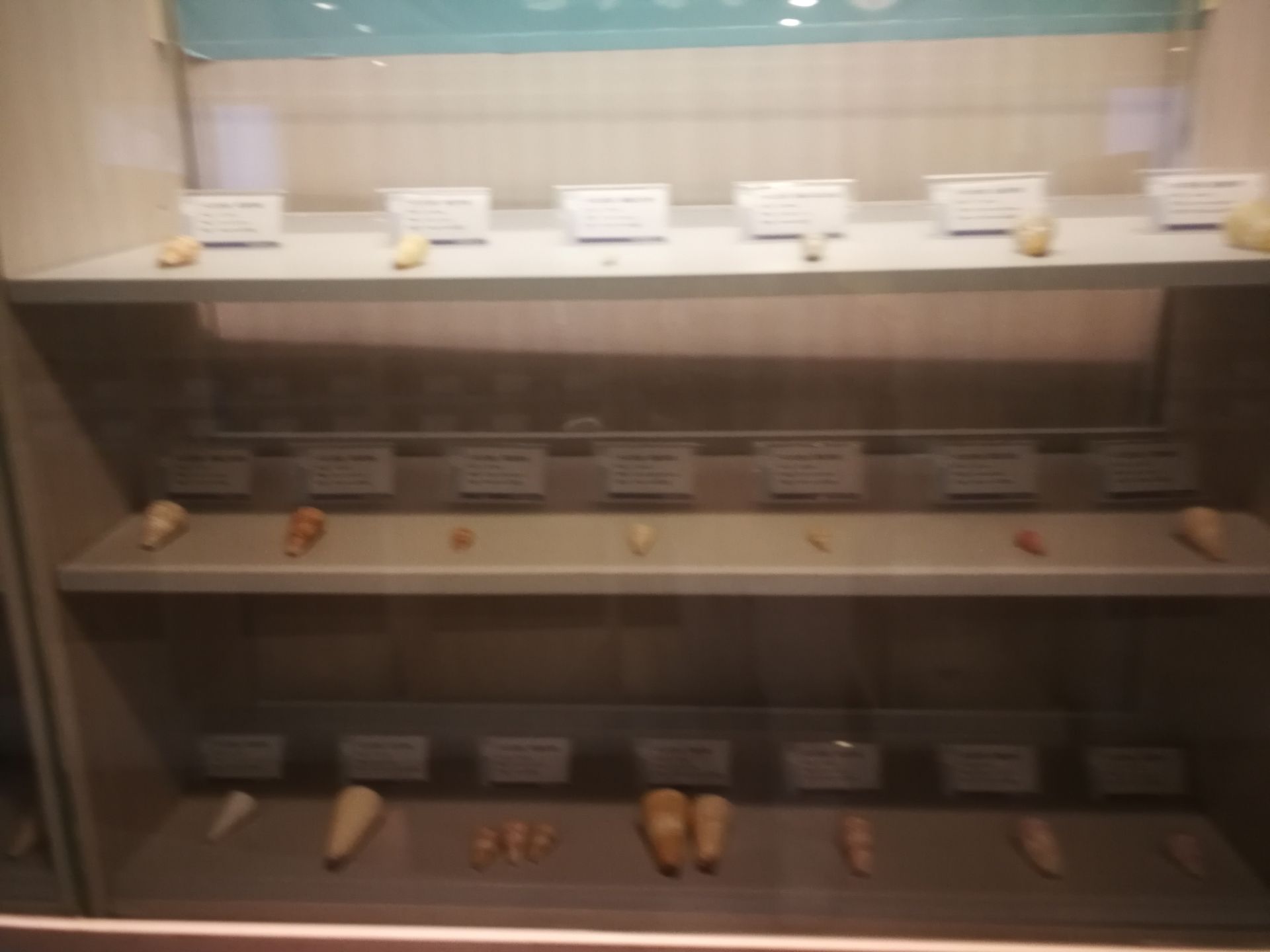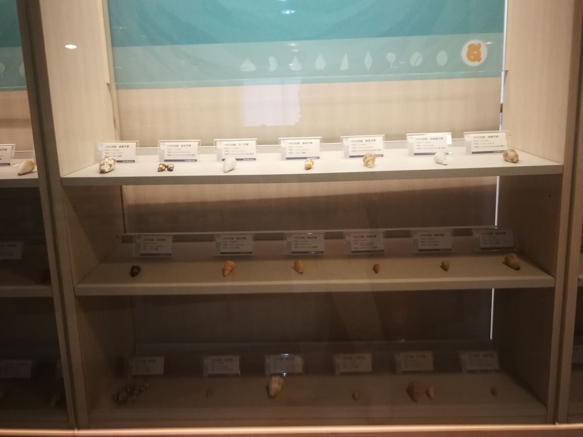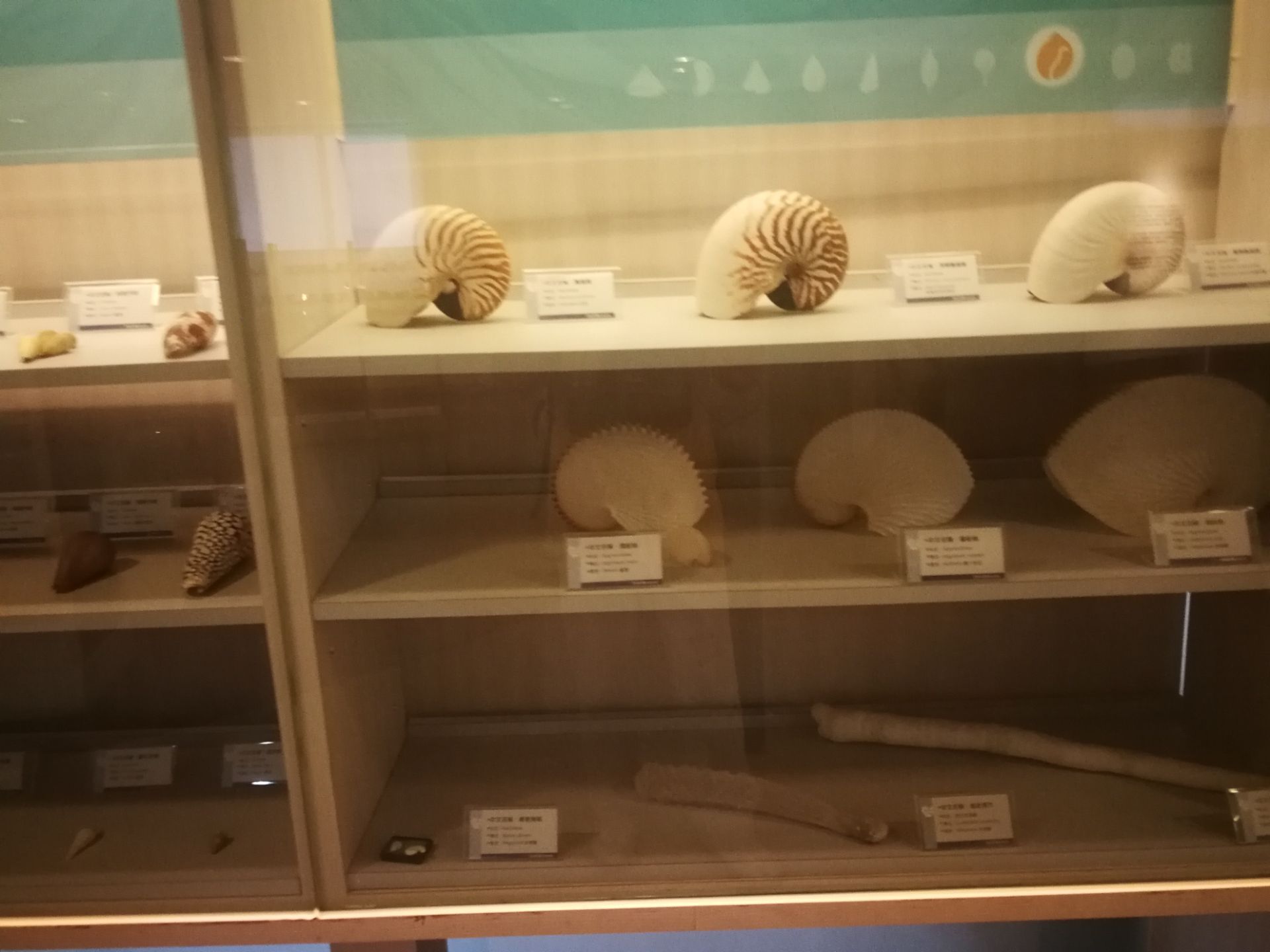 馆内介绍了软体动物的知识,蛤,蚌海螺这些贝类,与章鱼乌贼等没有外壳的动物统称软体动物。双壳纲,掘足纲,头足纲,腹足纲统称单板纲,如贝和螺。 软体动物已经适应千变万化的生活环境。海贝指生活在潮间带,浅海深海的贝类。淡水贝指生活在河川湖泊溪涧水田等淡水环境的贝类。陆贝是生活在湿地林木树栖地栖的贝类。 台湾的洋流有黑潮和涌潮流,让深海的养分给贝类带来了丰富营养物质,又分为,海岸贝,浅海贝,深海贝。 南北纬三十度之间,水质澄清,出现了珊瑚礁生态,让我们更好完成珊瑚的保育工作。