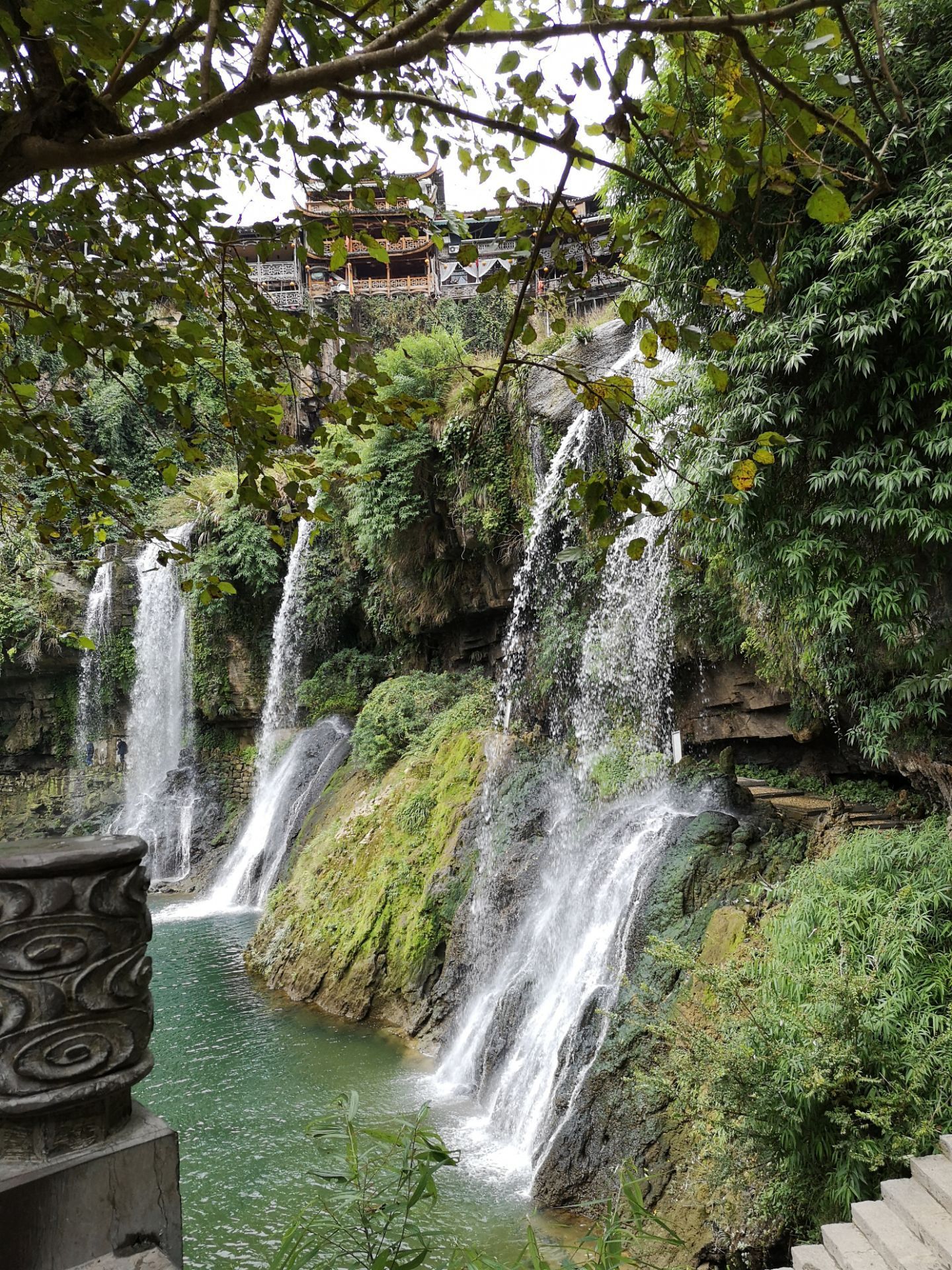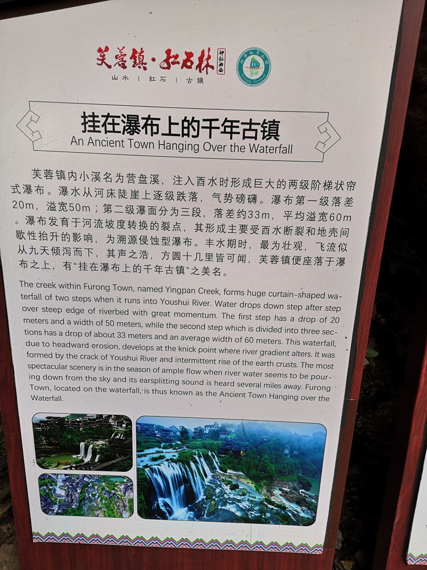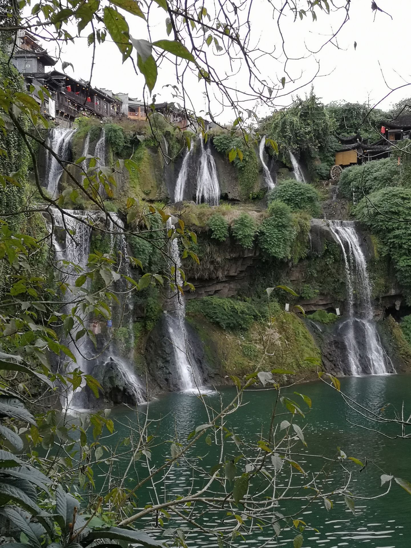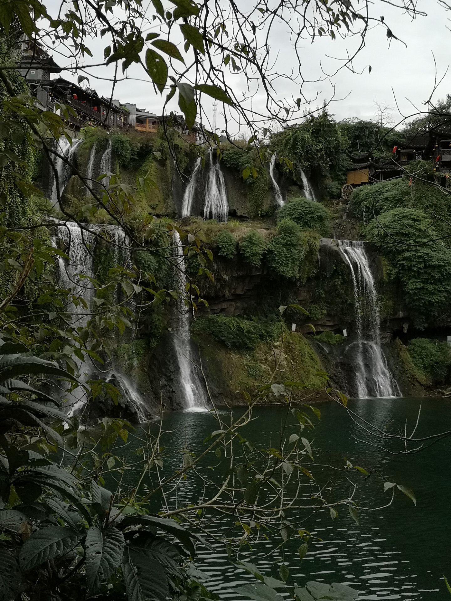是一座有着两年多年悠久历史的古镇,古镇最大的亮点是营盘溪水流入酉水河形成了阶梯状帘式瀑布,落差几十米
