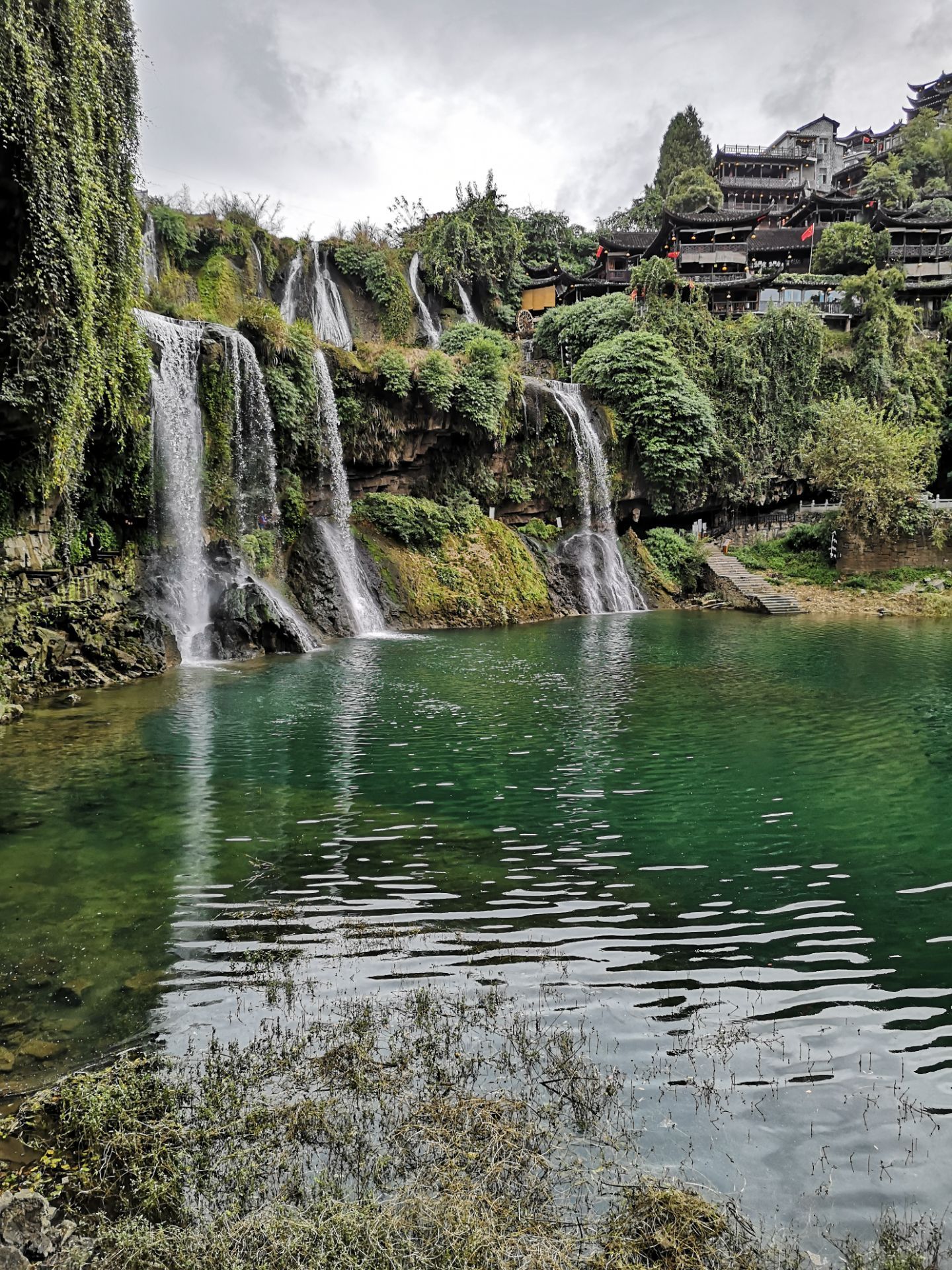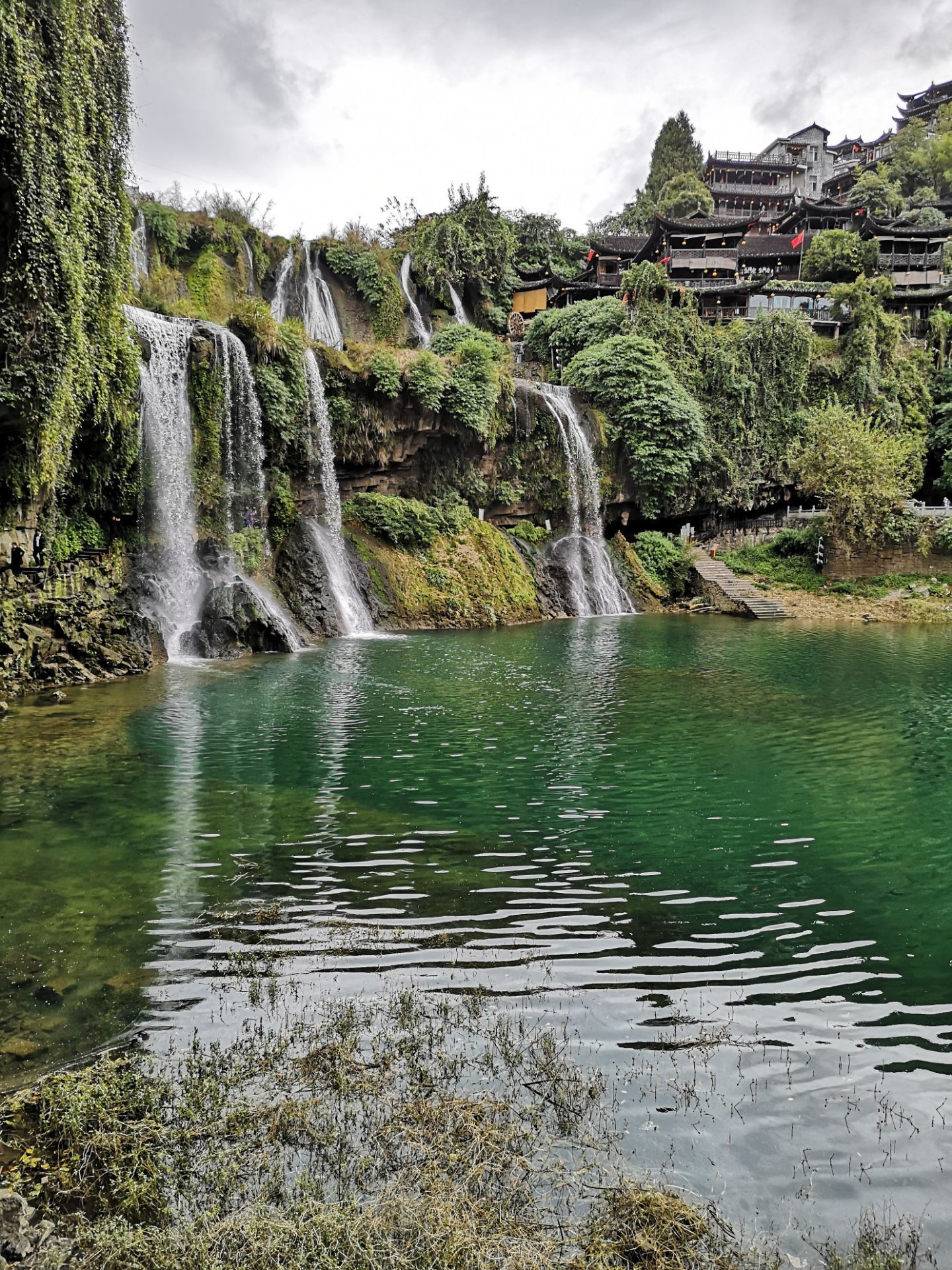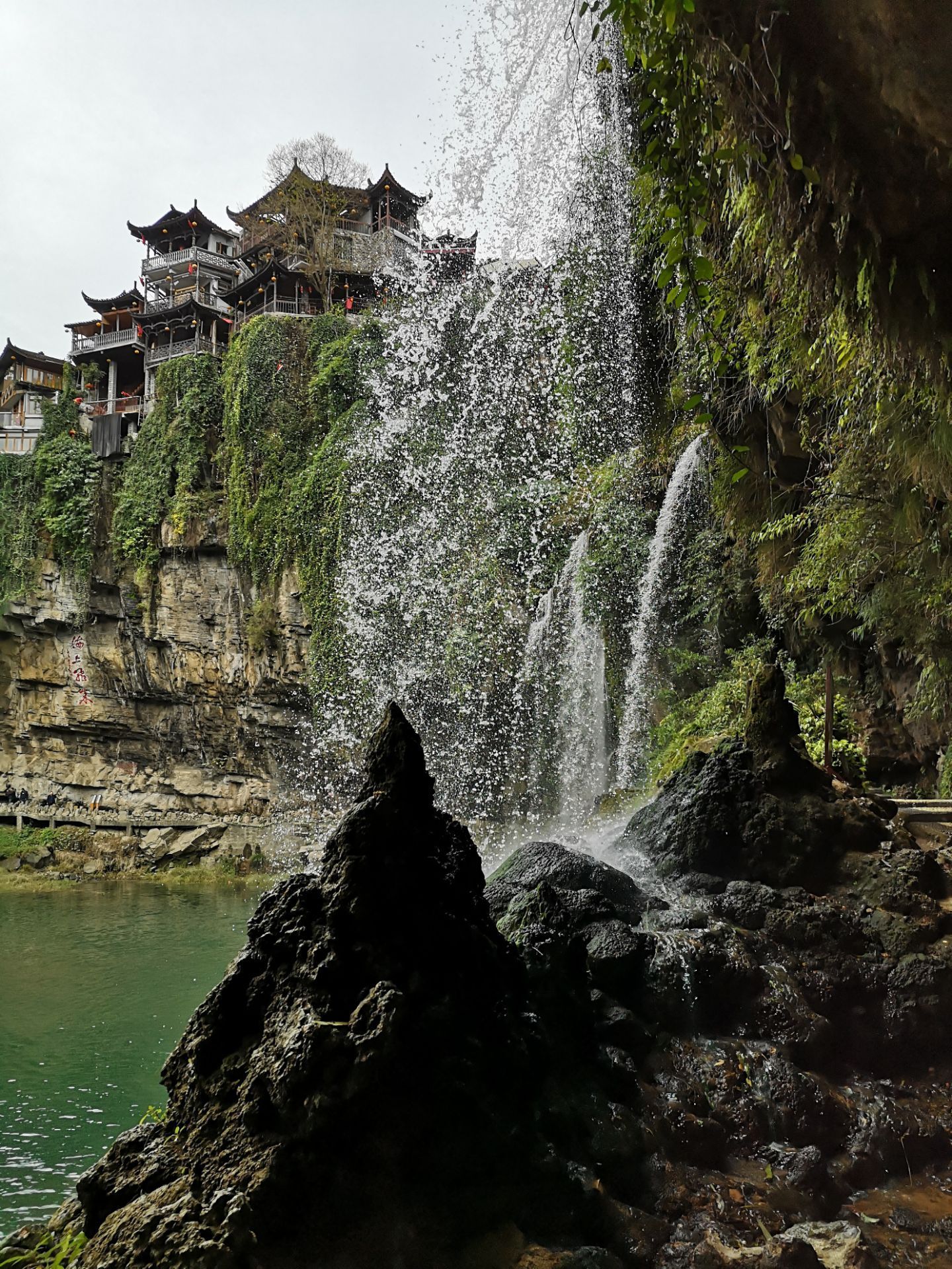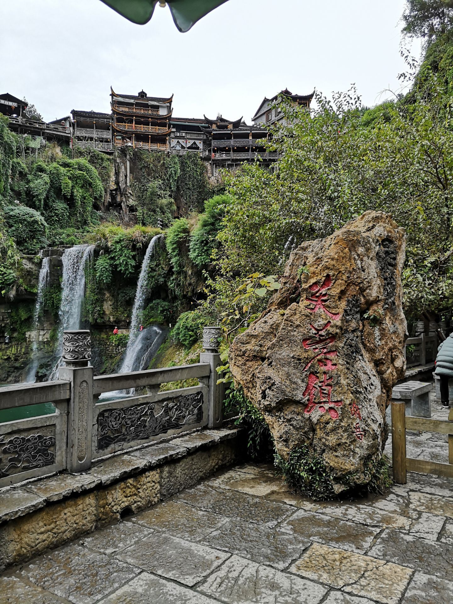 是一座有着两年多年悠久历史的古镇,古镇最大的亮点是营盘溪水流入酉水河形成了阶梯状帘式瀑布,落差几十米