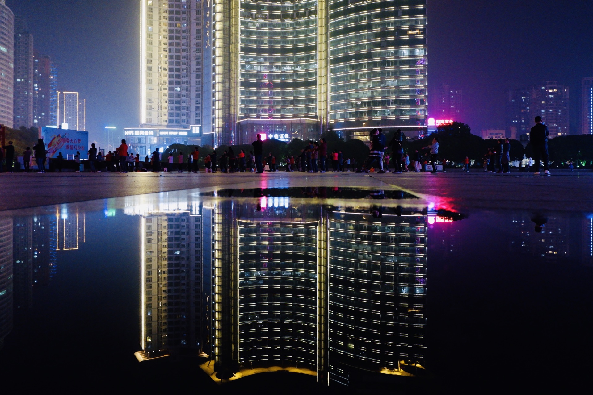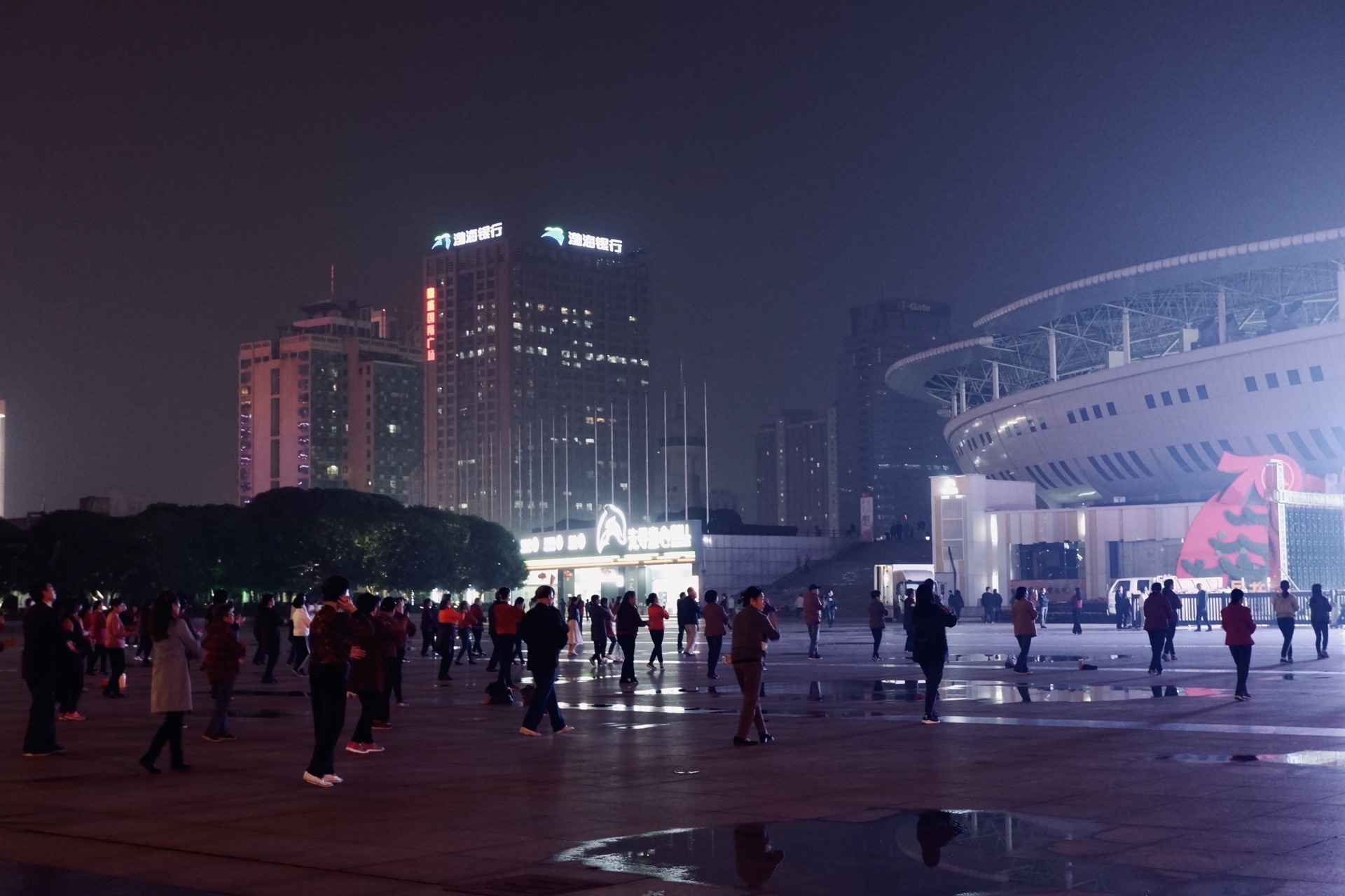 超级多人的整体广场舞 背靠贺龙体育场,这个白沙广场还是很大的 虽然是晚上过来 没想到的是人气那么高涨