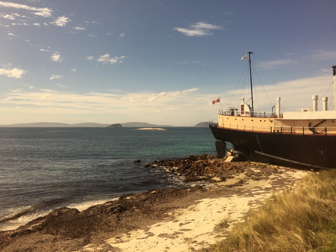 鲸鱼博物馆左边走到底有一片小沙滩,临近黄昏时候最适合拍照留念,另一边可以观看全景