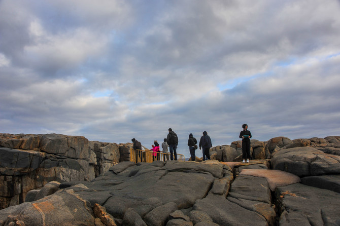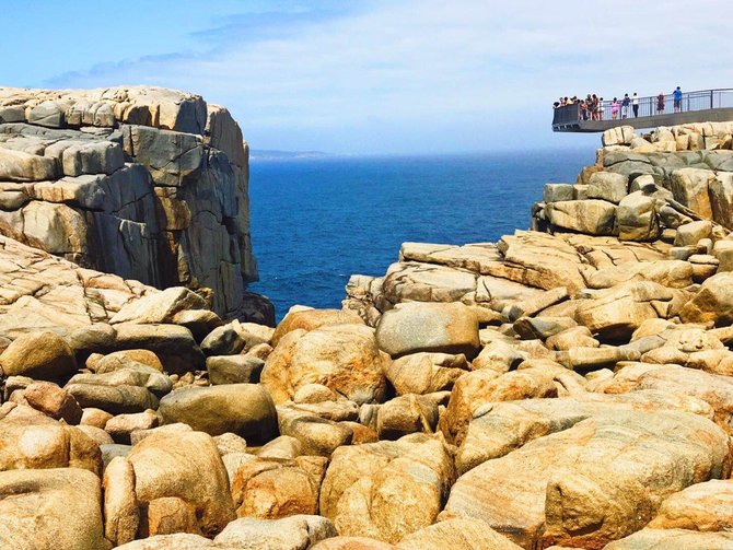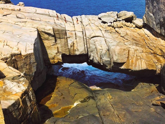 阿尔巴尼有两处吸引人的自然奇观,一是天桥(Natural Bridge)和天堑(The Gap),这里是印度洋和太平洋交汇的地方,海边岩石林立,海面视野开阔,风景极美。天桥和天堑就是海边的岩石天然形成的。天桥是海水把岩石底部冲掉只剩下桥面;天堑是海浪冲刷岩石之后打开了一个很大的间隙。另外一处是天然水柱(Blow Holes),这是由于海水长年冲击岩石形成了一个通向顶部的洞,每当海浪足够大,形成足够的气压,水就会从洞里喷上来数十米,很壮观,可是能亲眼看到这样的景象需要一些运气,不是每次都有,很可惜我们就没有看到。