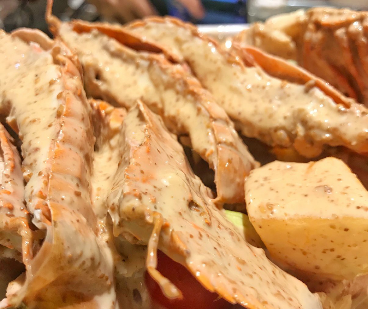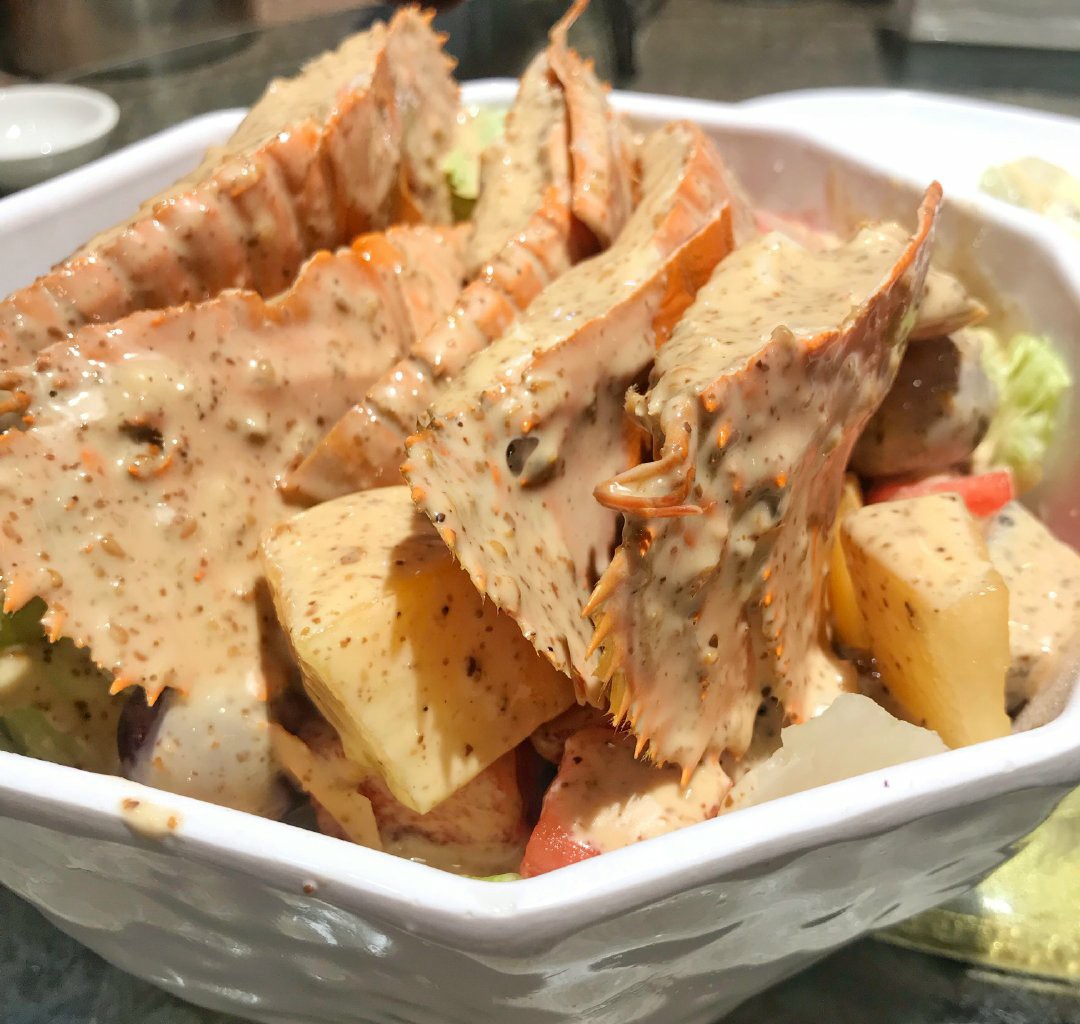 一大块没有刺但肉质会稍微老一些。这道冷菜不太推荐。满足的紧实的龙虾肉。蒜香做法是他家特色