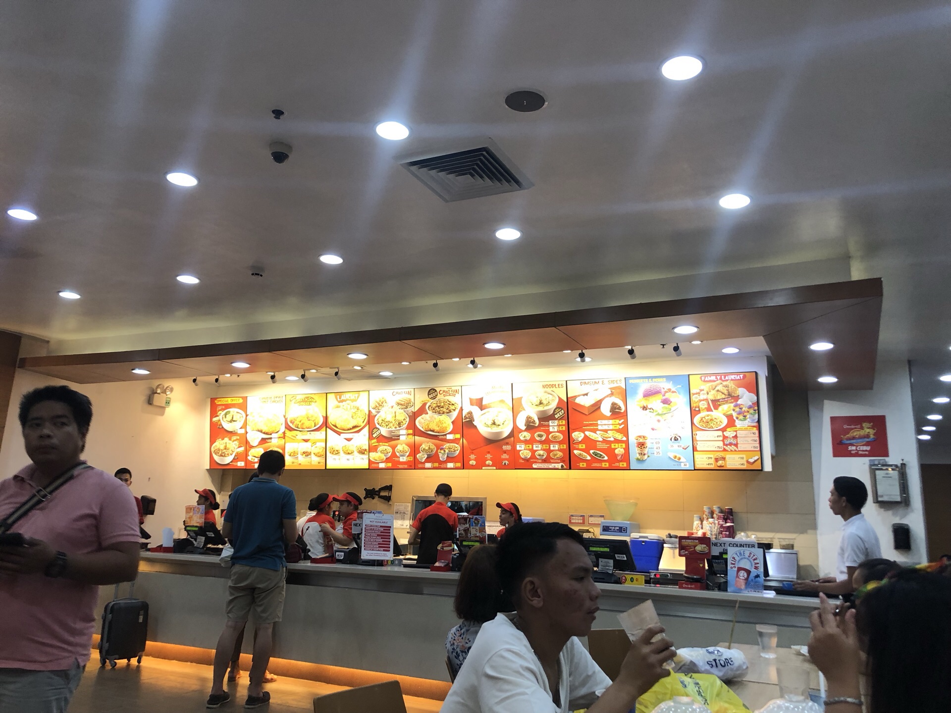 从邦劳回到宿务,住在sm附近,先来吃个饭再去酒店的,看了下还是快餐应该最快,就在一楼吃了他们家,点了个糖醋鱼的套餐,有冰可乐,自己取餐具,炒面条味道真的很不错啊,这样一个套餐才180,很划算了,而且又快。就在必胜客边上。
