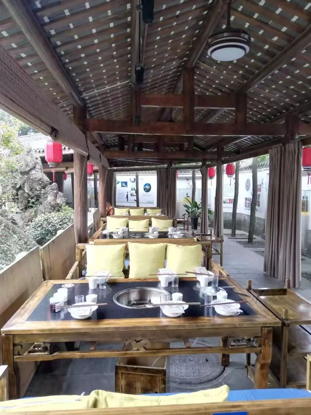 ...树植物之间,体验不错,火锅味道也不会很大,每桌之间有布帘可以放下,既保暖又比较私密,设计的不错在庭院风格的环境中用餐,绿树植物之间,体验不错,火锅味道也不会很大,每桌之间有布帘可以放下,既保暖又比较私密,设计的不错。
