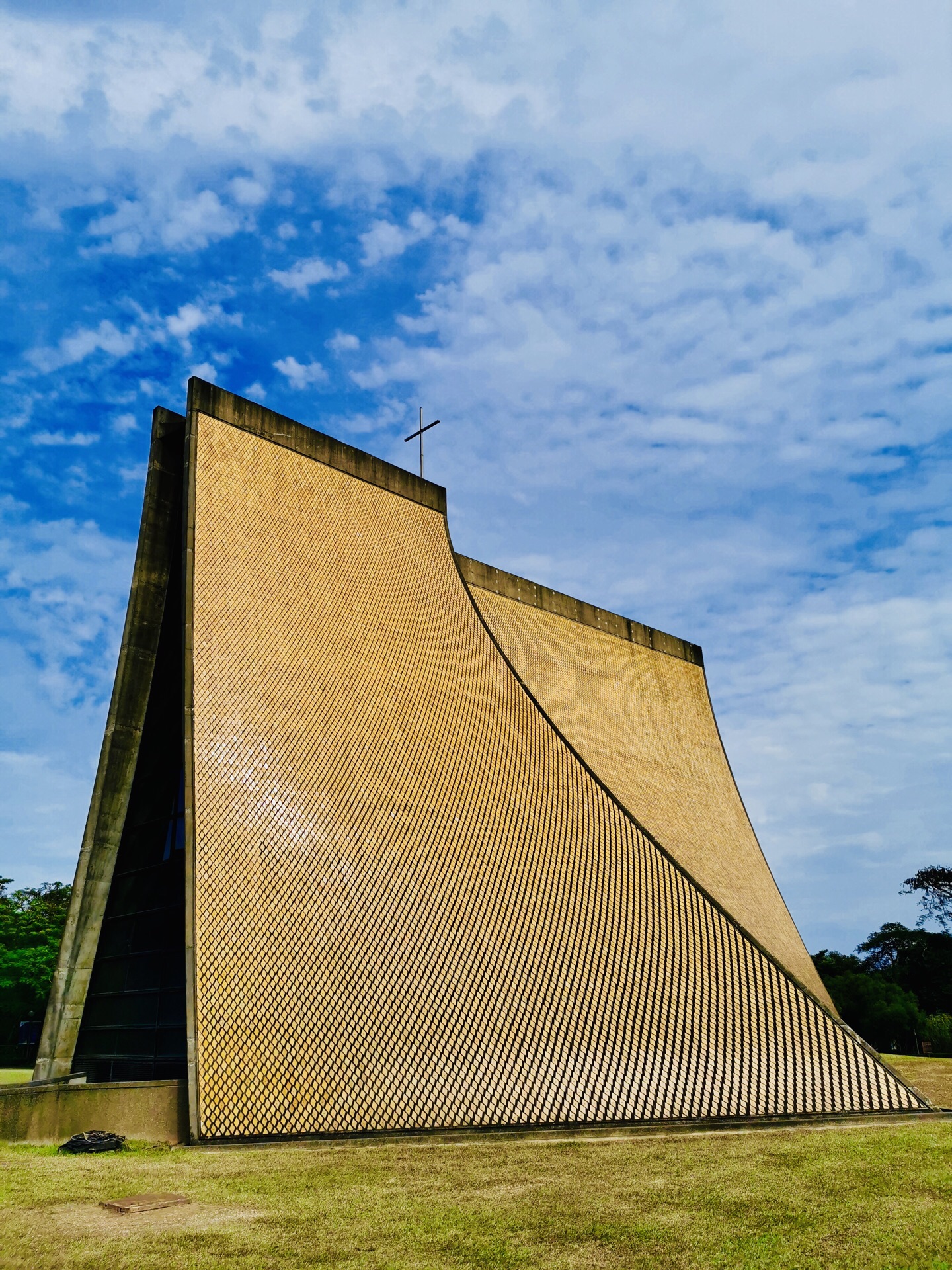 非常有特色的建筑,久仰大名,在东海大学内,所以喝完了牛奶踱步过来参观一下,跟着导航走没有走冤枉路。建成于1963年,经过了56年岁月的洗礼,依旧散发着不同的建筑光芒,是由贝聿铭、陈其宽共同设计建造的。周围的草坪也有打理,建筑就安静地矗立其中,我也就远远的观望下,也不知晓是否对普通游客开放。 教堂外观从不同角度看有不一样的视觉感官,是由四片面组合,屋脊分开,一线形天窗形成,双曲面的圆锥体很富有美感,表面用了瓷砖瓦,黄色的在阳光下格外显眼。建筑上有些细节的设计很惊艳~!