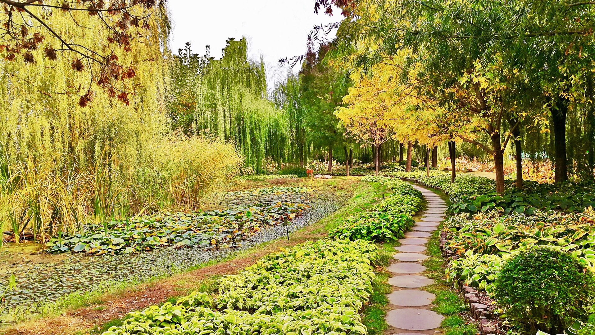 长不过四、五公里的第八大街两侧,分布着芊卉园、水芝园、集芳园、揽春园、月季园、百草园、牡丹园、盐生园、绮秋园、叠翠园、百花园等11大园区,分别以种植水生植物、球根植物、灌木品种、月季花、药用植物、牡丹芍药、盐生植物以及色彩植物和常绿针叶树为主,栽培着来自世界各地的上万个品种植物,总面积达26万平方米,是我国北方最大的植物资源库,一年四季真正能欣赏春草夏花秋叶冬雪的地方!