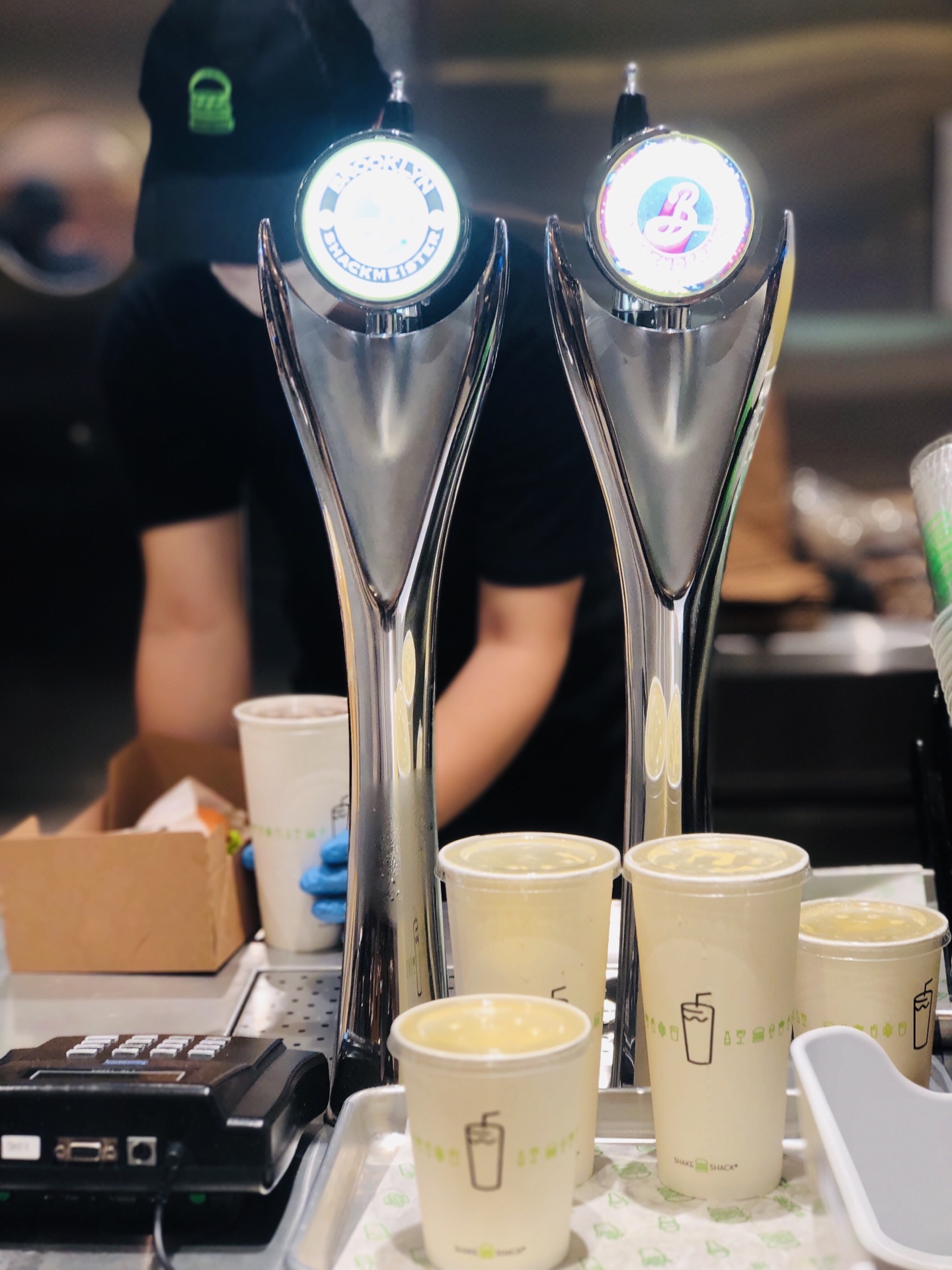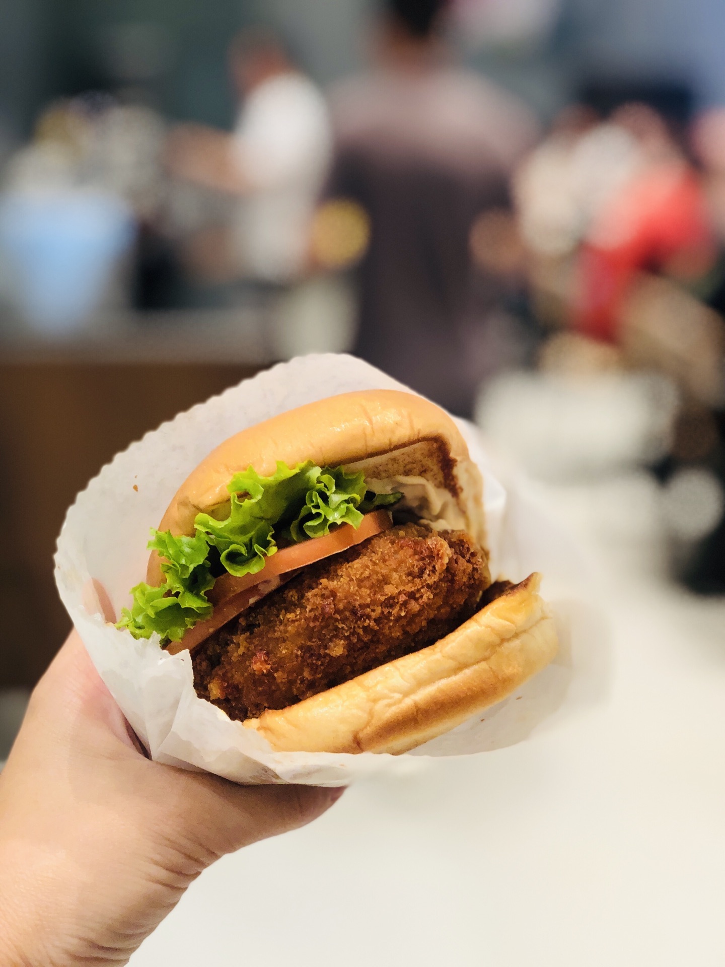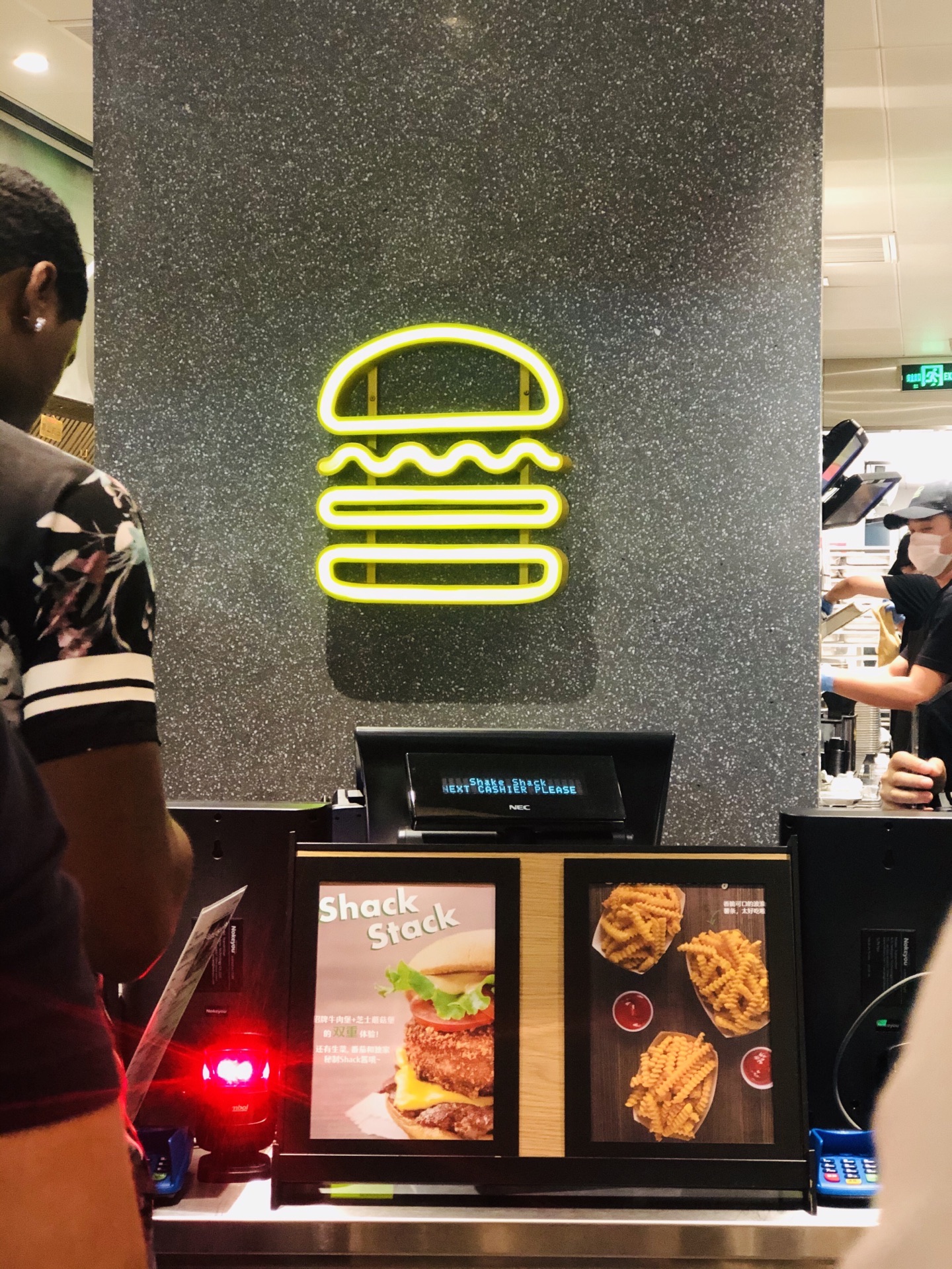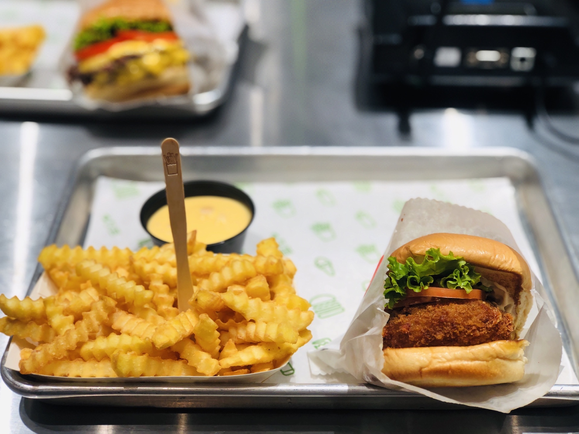 终于也算吃过shake,然而并没有想象中的那么好吃吖,价格还那么辣手 嘉里中心虽然排队,不过也就等个5分钟,点单速度还是要点赞的; 一人食点了那个没有肉的芝士蘑菇堡63,个头不大,不过料还是挺足的,原来芝士和蘑菇是裹在面粉里炸出来的,炸的有点过头了,咬下去有点硬了…… 还点了芝士薯条,这个真的不推荐,就是酱给的不一样,就要多➕10元,其实薯条还是蘸番茄酱最好吃,量真的大,一个人吃啊吃,还有一大半剩着.... 外国人好多,好的吧,歪果仁也爱凑热闹,店门口还有专门的区域寄放行李,服务挺周到的