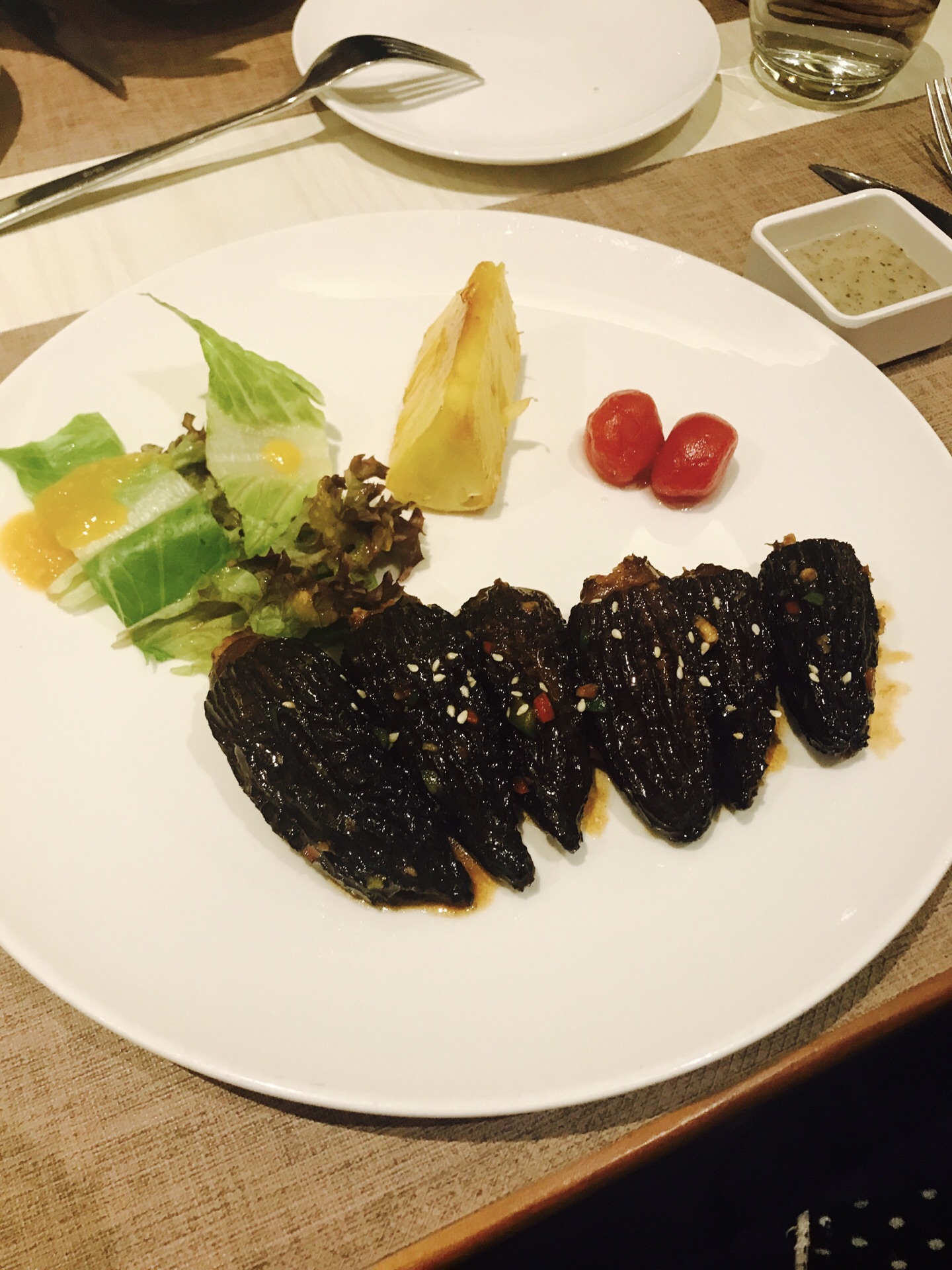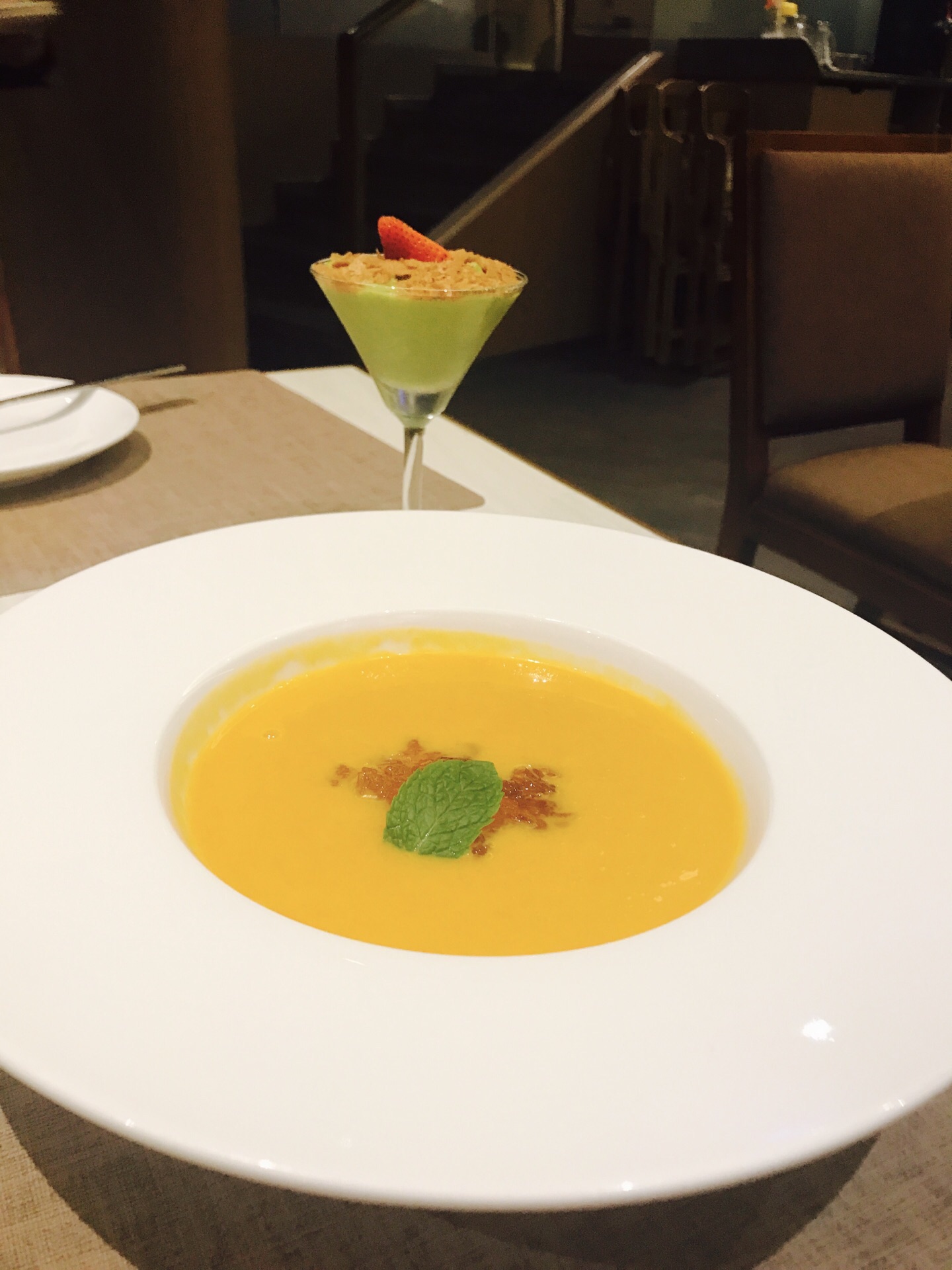 蔬稻 现在的人越来越注重细节,讲求健康,讲求生活品质,素食斋菜不再是以前那个模样。 开在珠江新城CBD地段的蔬稻,主打素食餐厅,环境很好,看上去不像素食餐厅,更像西餐厅。 餐前小吃,麻薯小餐包,温温热,入口淋软,经过稍微加热后,香味也出来了。 原烧汁煎羊肚菌,常常听到菌类,情不自禁与健康食品联想一起,羊肚菌的肚子塞满了馅料,味道有点儿辣,伴碟菠萝好甜哦 岩烧慢煮菇扒,像一把伞躺在地上,菇菌味道比较淡,配上酱汁刚好,很好吃。 甜品: 牛油果慕斯,牛油果意外的好吃,果泥入口绵滑,上层铺满碎碎,双层口感。 南瓜桃胶露,颜色金黄,淡淡的甜味,吃着觉得清香。