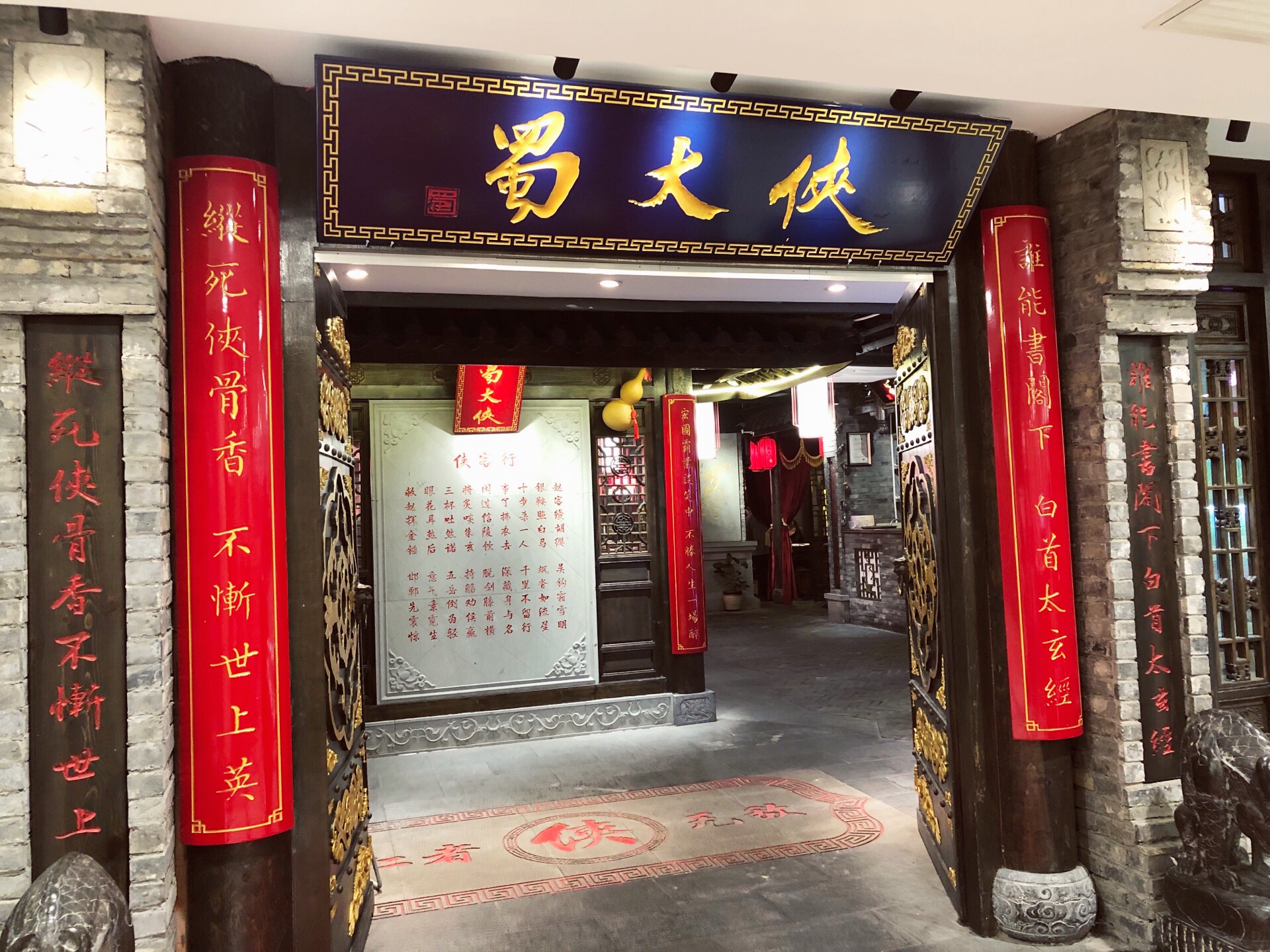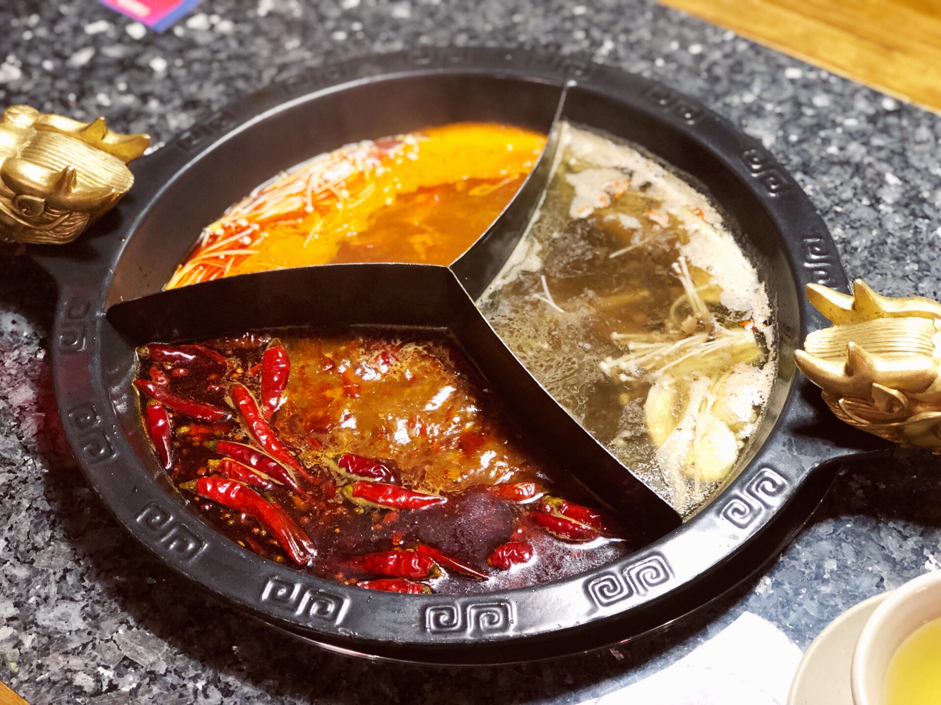 天冷了就想吃火锅呀,蜀大侠的性价比还是超高的,这家在天山巴黎春天,要从旁边的电梯上去,否则找了一圈没找到汗。 店如其名,环境相当古色古香,服务很热情,店里生意也很好,有自助调料和水果小食,蛮丰富的。 锅底点了奔驰锅,就是可以三个锅底,辣锅番茄锅菌菇锅,其实还是最喜欢辣锅,够味道。 牛蛙是每次吃火锅必点,活杀得还蛮大一只直接放到辣锅里煮了,推荐贵妃牛肉和香菜丸子,量够多,肉质不错噢。还有鲜鸭血是必点的,服务员会过来帮忙下过锅,煮几分钟,鲜鸭血特别的鲜嫩味美,赞赞赞。