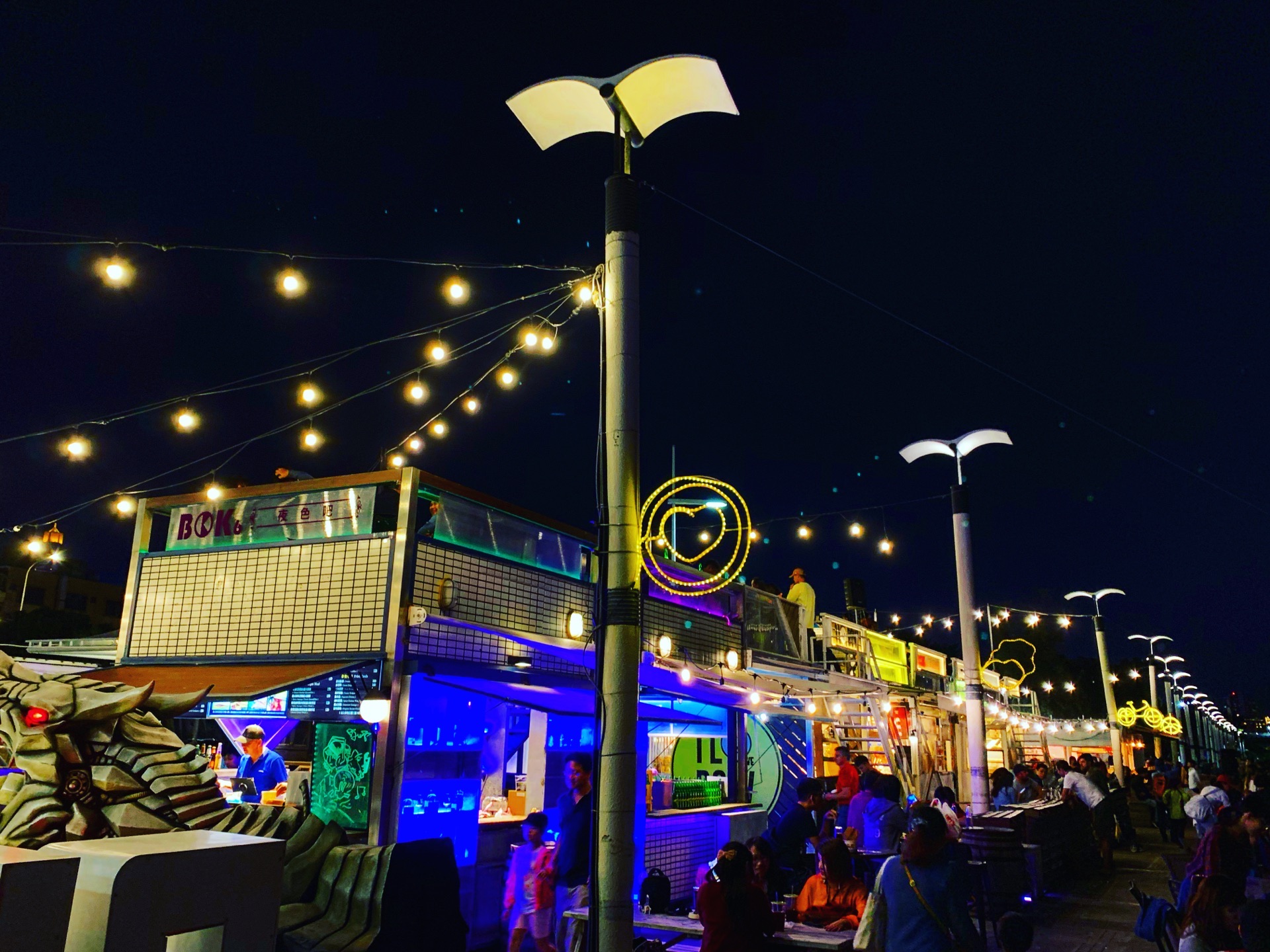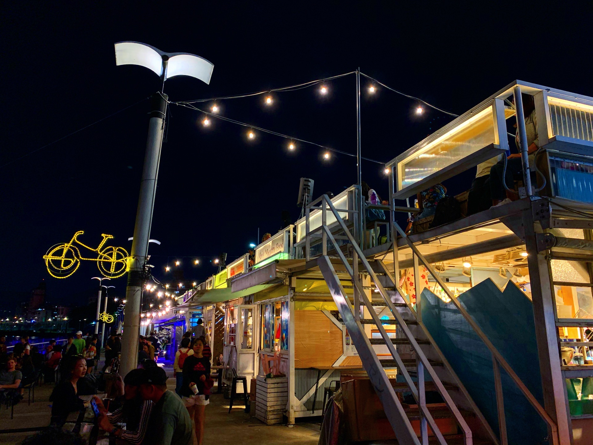 在大稻埕碼頭內的一處貨櫃市集,沿著河岸而建,主體建築都是以貨櫃為基礎的創意設計,主要營業項目為各式餐廳,酒吧,咖啡館等,並結合街頭藝人表演,讓來此的遊客,除了能欣賞到美麗的淡水河夕陽景致外,還能品嚐道地的異國美食料理,以及河岸酒吧文化。