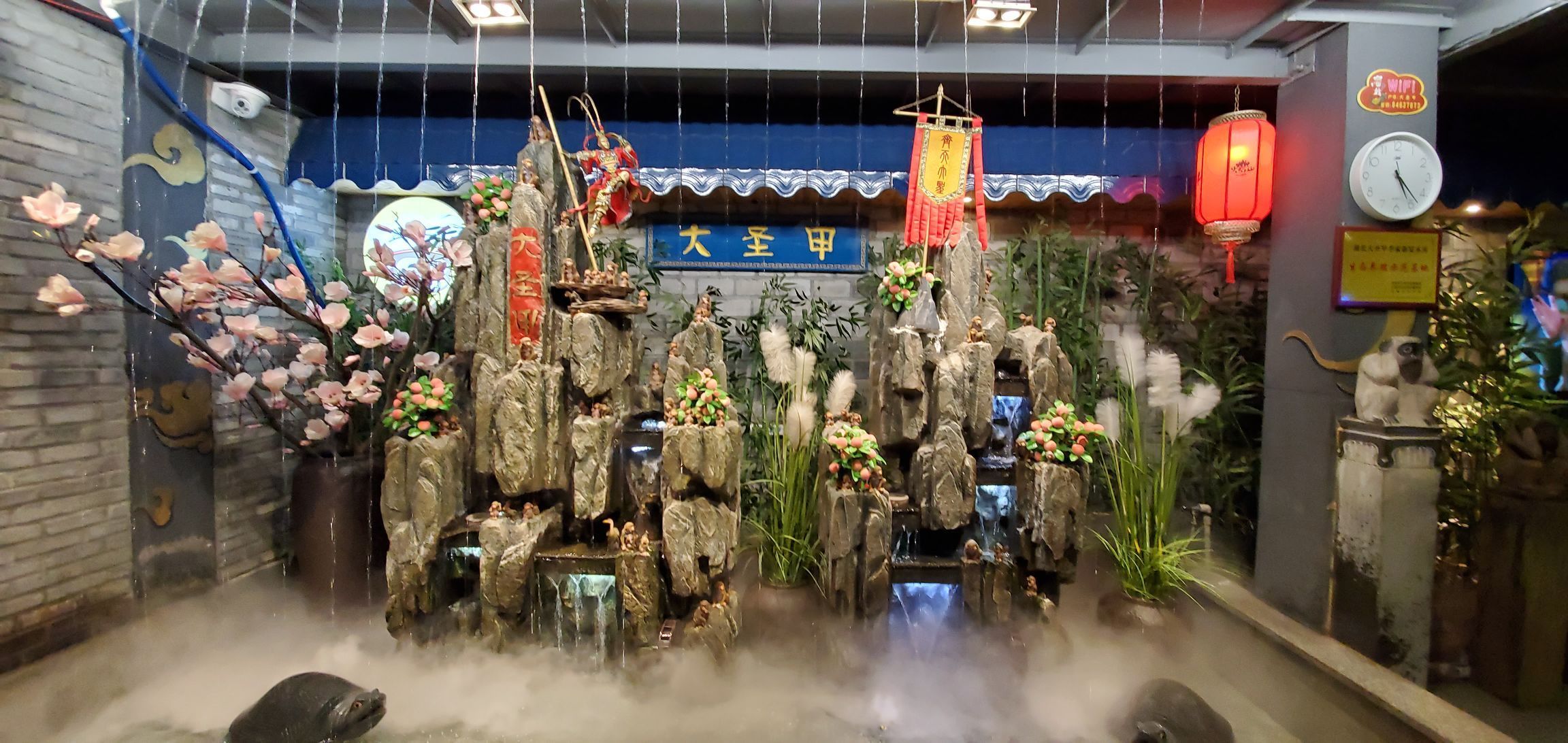 装修特别有特色。老孙的宝贝全部在里面一一展示。 他们家甲鱼的特色是油厚味醇地址在汉阳江畔鹦鹉洲长江大桥的下面。 装修特别有特色。花果山水帘洞,如意金箍棒。老孙的宝贝全部在里面一一展示。 他们家甲鱼的特色是油厚味醇。