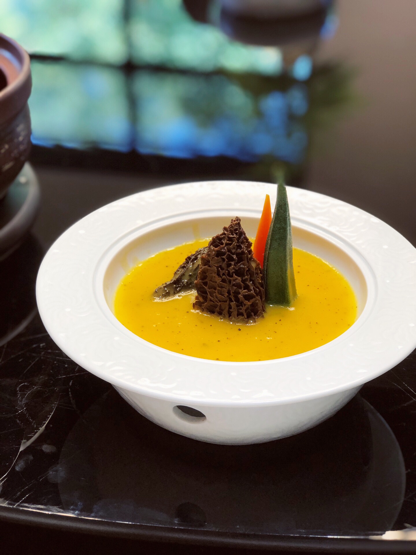 荷风细雨在碧云这边名气还蛮大的,慕名而来,提前预定了包间,环境如店名一样禅意自得,悠然清新,菜肴比较融合口味,味道很有惊喜。品茶品美食,感觉很舒服哦。 麻辣水煮八仙锅,是店里的招牌,有着川式口味的海鲜毛血旺,里面加了鲍鱼虾仁等海鲜,食材很棒,更加的提鲜美味了。 深海目鱼烧排骨,排骨肉质很香,和目鱼海鲜一起烧味道也很好,还是喜欢吃猪肉呀很哈哈。 金汤汁烩羊肚菌,一人一份造型美美的,羊肚菌里面包裹着虾仁好QQ弹弹,滋补又好吃呀。 黑松露牛肉饼,超级香脆的牛肉饼,特别是里面加了黑松露一下子身价也提升啦,松露的口感好美味啊。 金秋时节少不了大闸蟹,母蟹也是超肥美的,打开就看到蟹黄超多超好吃,确实是最近吃到品质最后好的一个了。