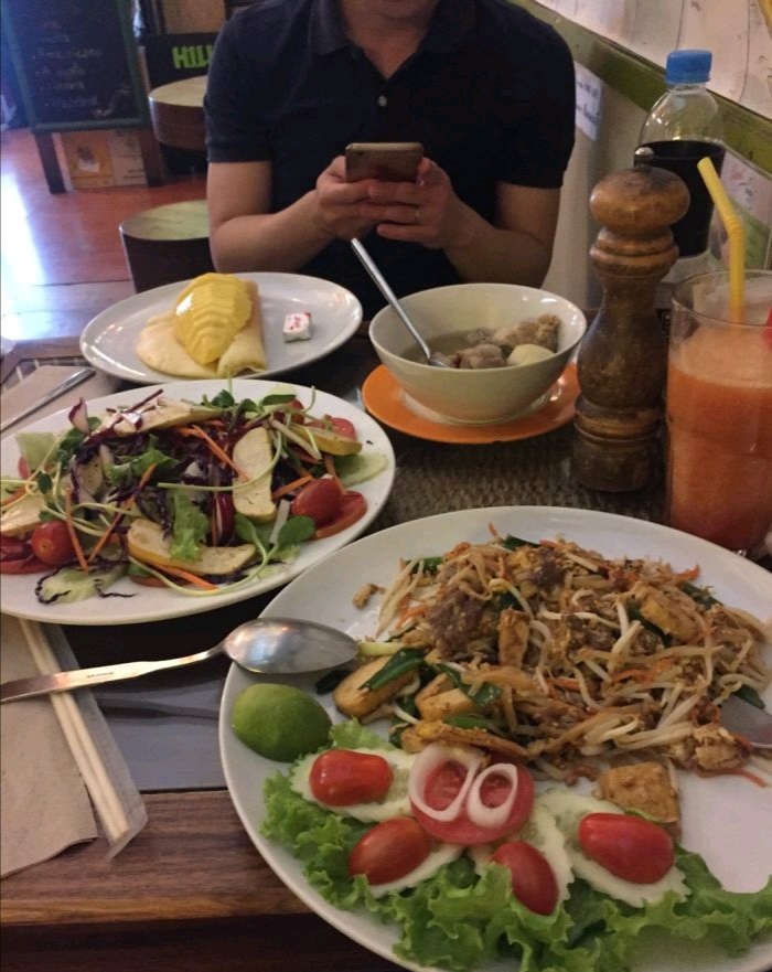...东西都有,要了一个色拉很好吃,还有泰国的炒河粉也很可以,我喜欢这种干干的炒河粉,排骨汤做的不好路边的小店,泰国菜还有西式的东西都有,要了一个色拉很好吃,还有泰国的炒河粉也很可以,我喜欢这种干干的炒河粉,排骨汤做的不好。