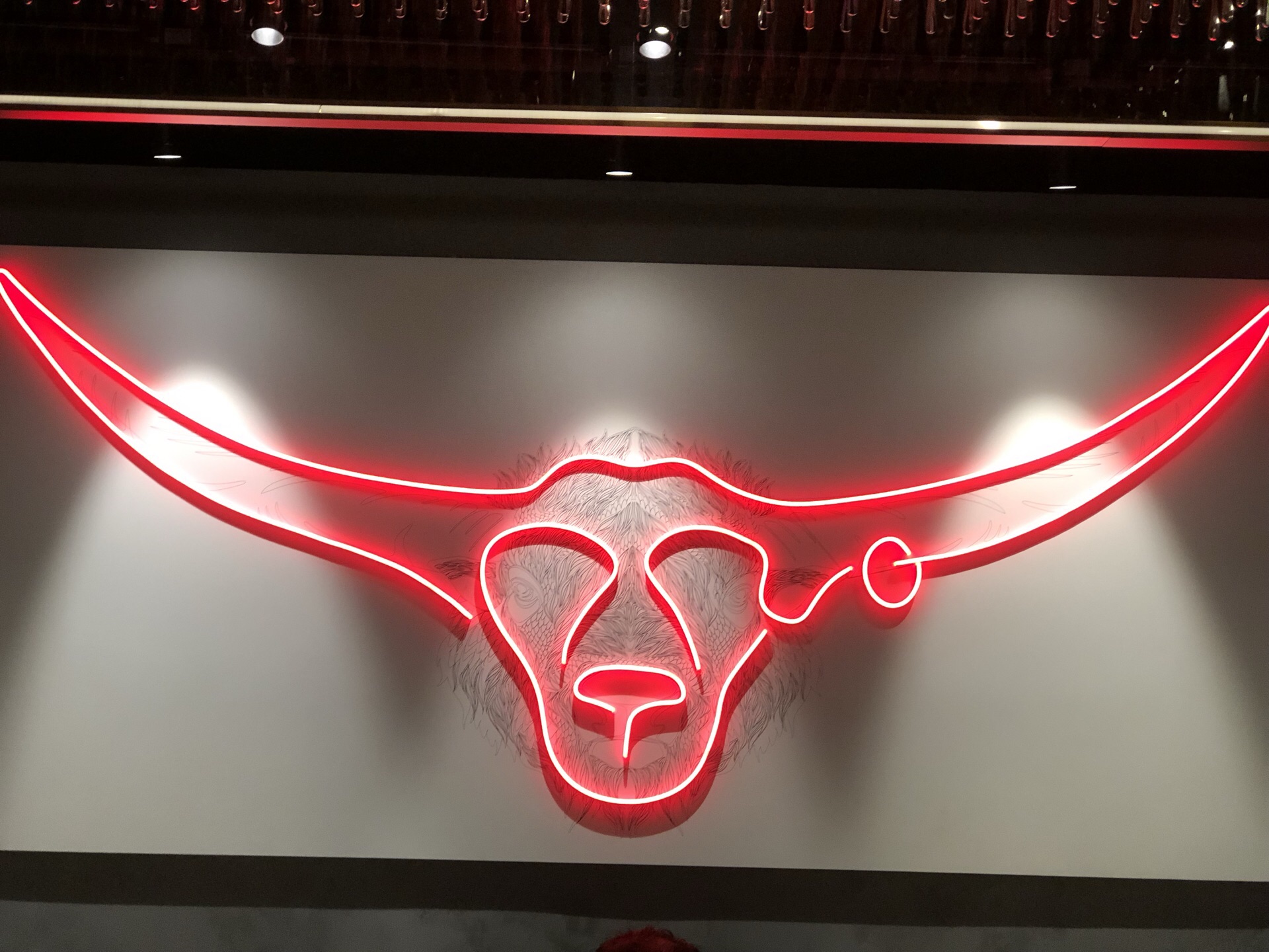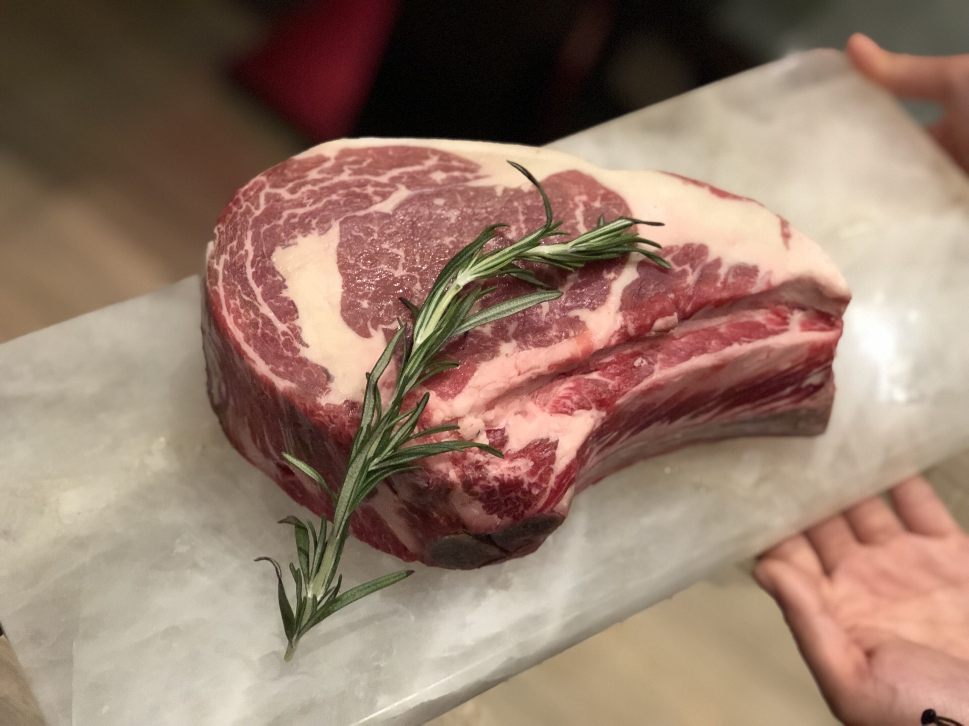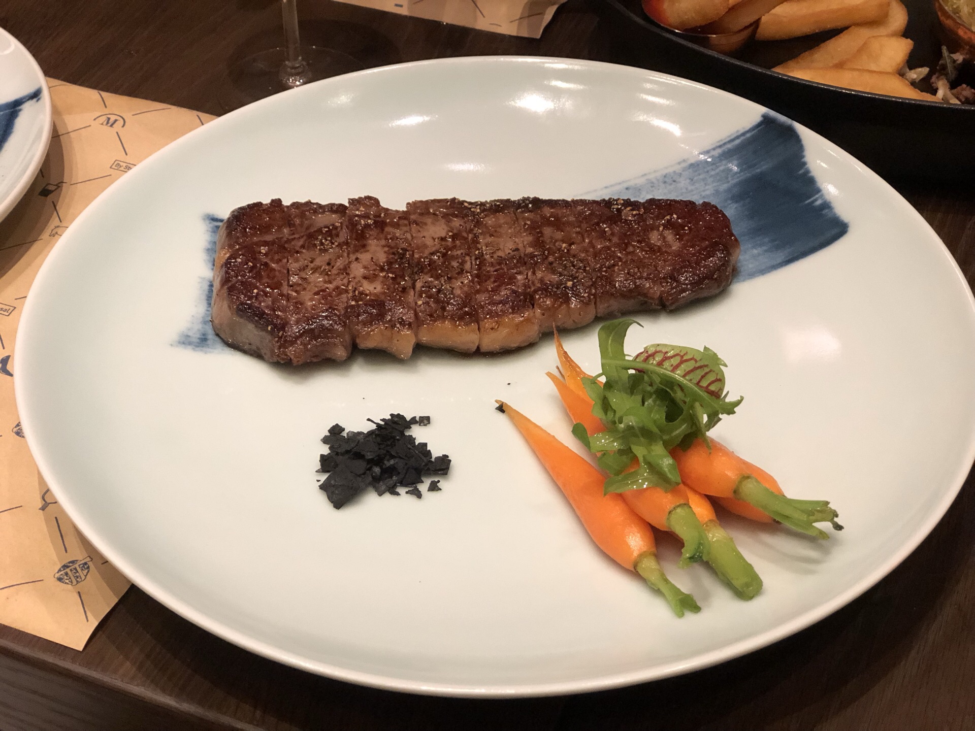 之前在东湖路上品尝过,绝对是做牛排的专家。 [环境]店里各种各样的的牛排会挂在橱窗里展示出来,就在正大广场后面,滨江旁,还是喝酒的好地方。 [服务]服务员还会把要烹饪的牛排展示给我们欣赏,好美腻呀,文理也很漂亮。 点了颜值很高的玫瑰鸡尾酒,搭配M5+顶级肉眼,5分熟刚刚好,肉色美丽,香气四溢,吃起来口感很好。 还点了|薄切牛胸肉汉堡^很特别哦,其他地方没见过。汁水很丰富,里面的秋天也很好吃呢。 甜品点了招牌|胖仙女的暗黑朗姆酒面包布丁^巧克力味道很浓,面包软软的,好吃